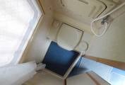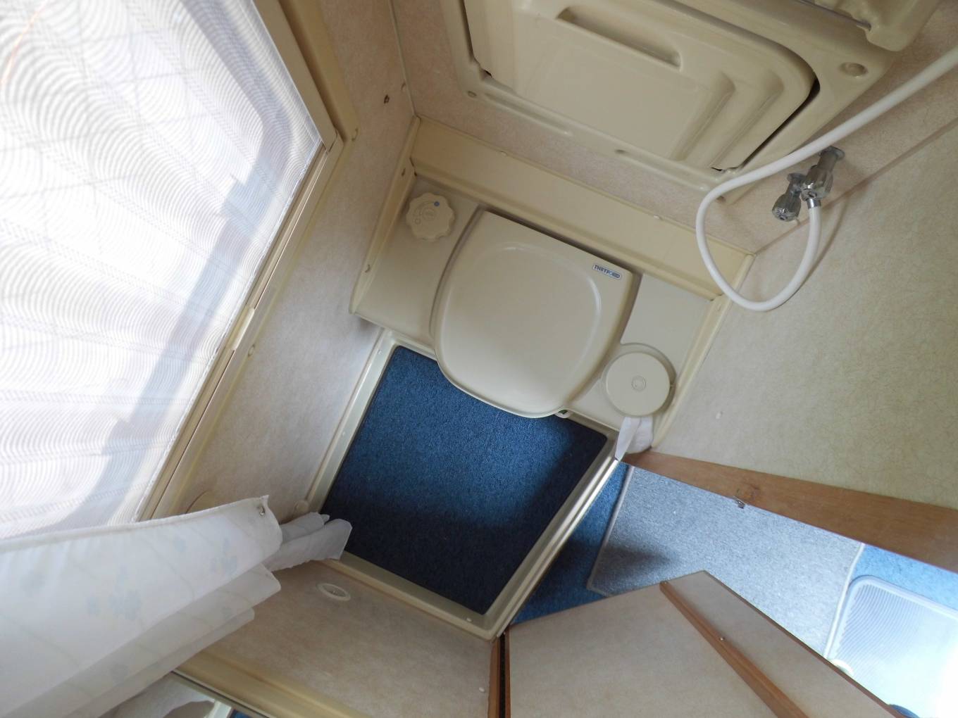 The washroom has a shower, a fold away sink a cassette toilet and a mirrored vanity unit so you have everything you need to keep yourself fresh on your trips.