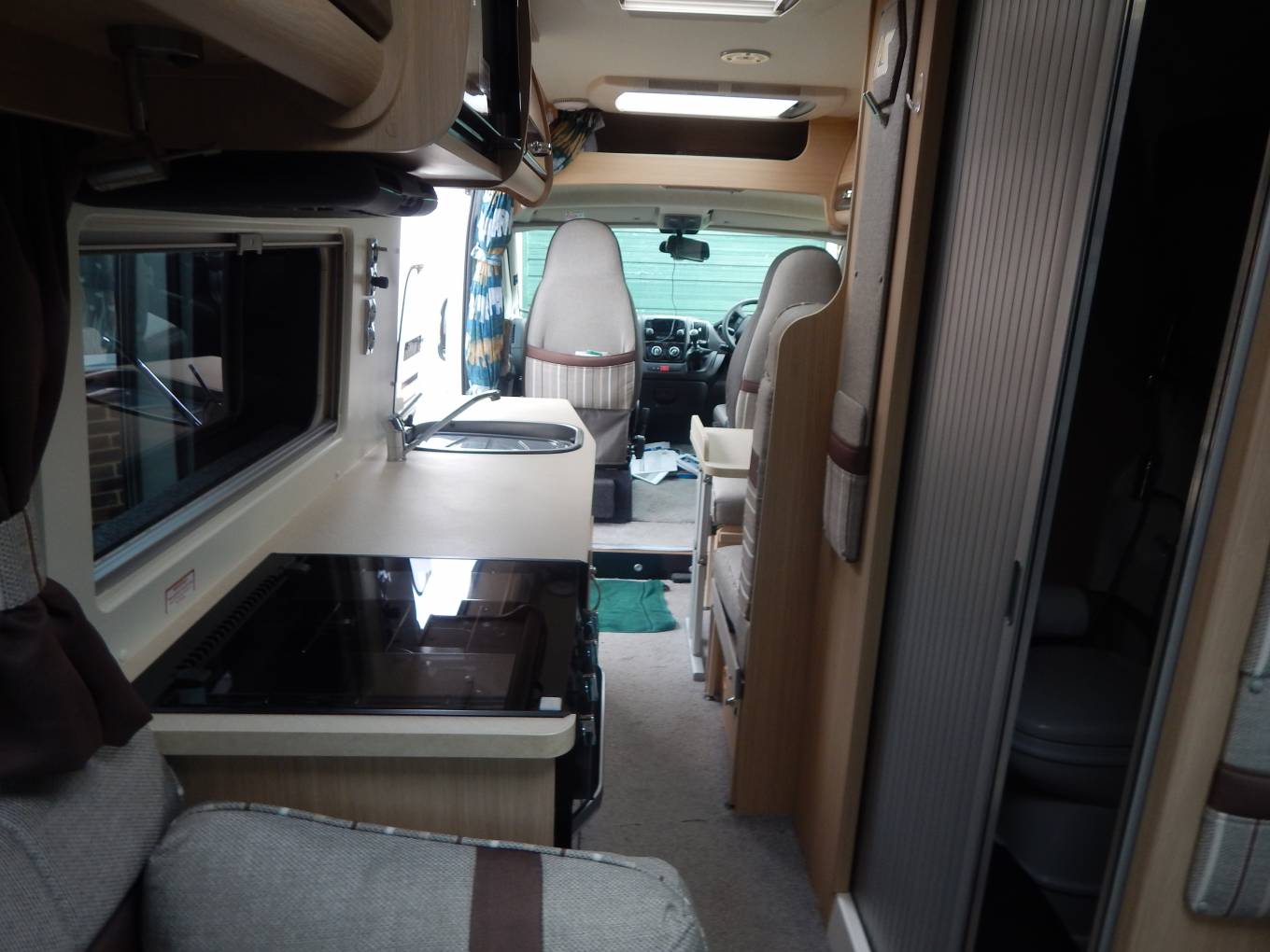 Mechanically the 2.2 litre six speed diesel is both powerful and economical, returning around 33 MPG in mixed use. It is relaxed at speed and has a comparatively low profile. Being based on standard van, rather than A Class dimensions, supermarkets and town centres need not hold too many terrors for those new to motorhoming. There is cab air conditioning, air suspension and cruise control too. The vehicle is not due its first MOT Test until April of 2019, it has a fully stamped mechanical service booklet. It has covered around 30,000 to date, on longer journeys, being as the cliche has it, nicely run in. There is a full Blue Tooth enabled stereo for audio and mobile phone.