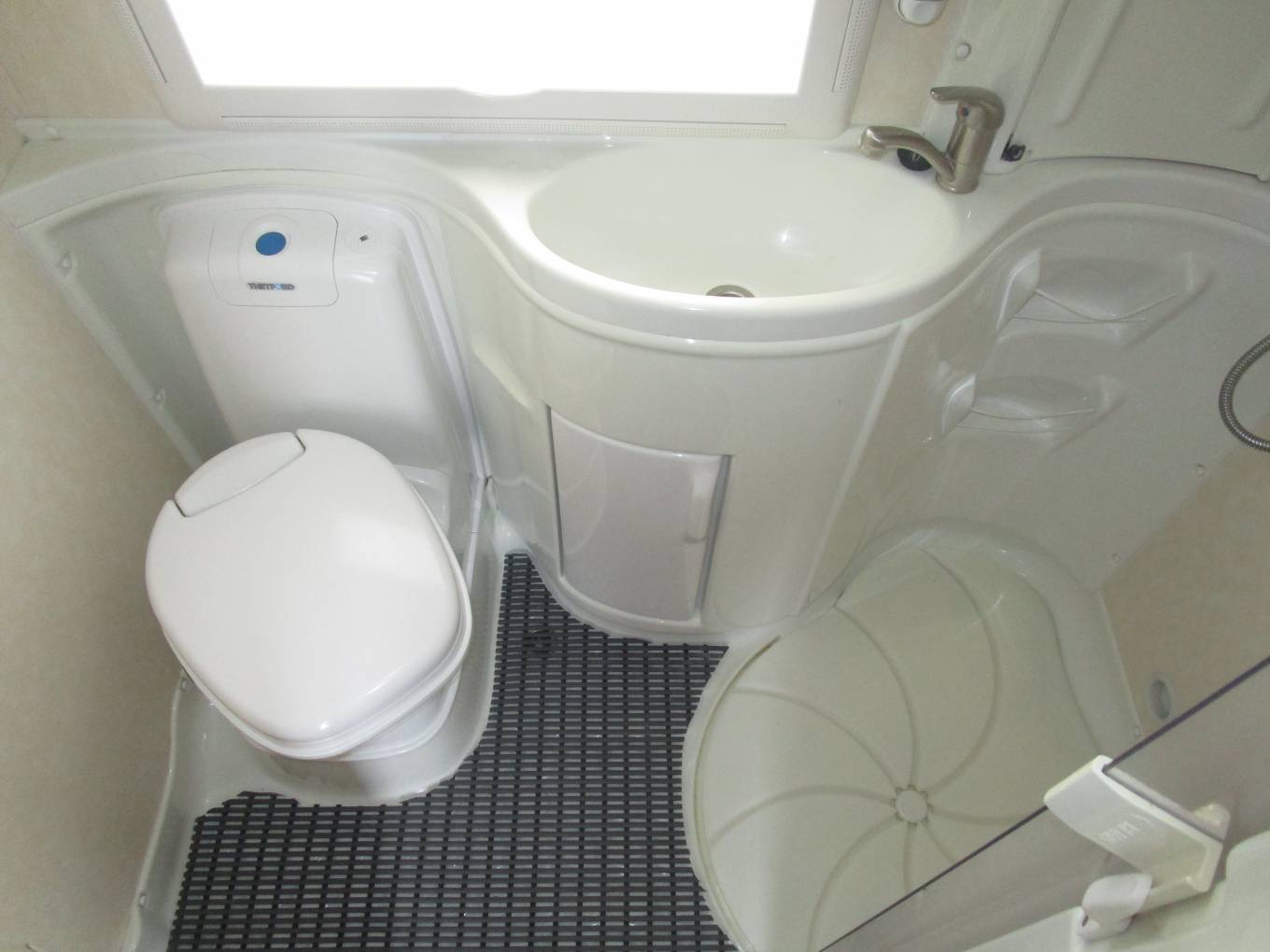 which offers a separate shower, sink with vanity unit and Thetford cassette