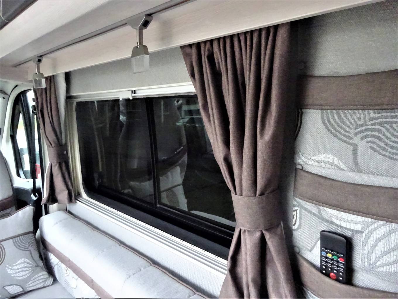 Pleated cab blinds, blinds and curtains to hab area. LED lights throughout including 3 ceiling mounted touch activated fittings.