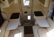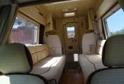 opposing large sofas, there is a large folding table that stows in the overhead