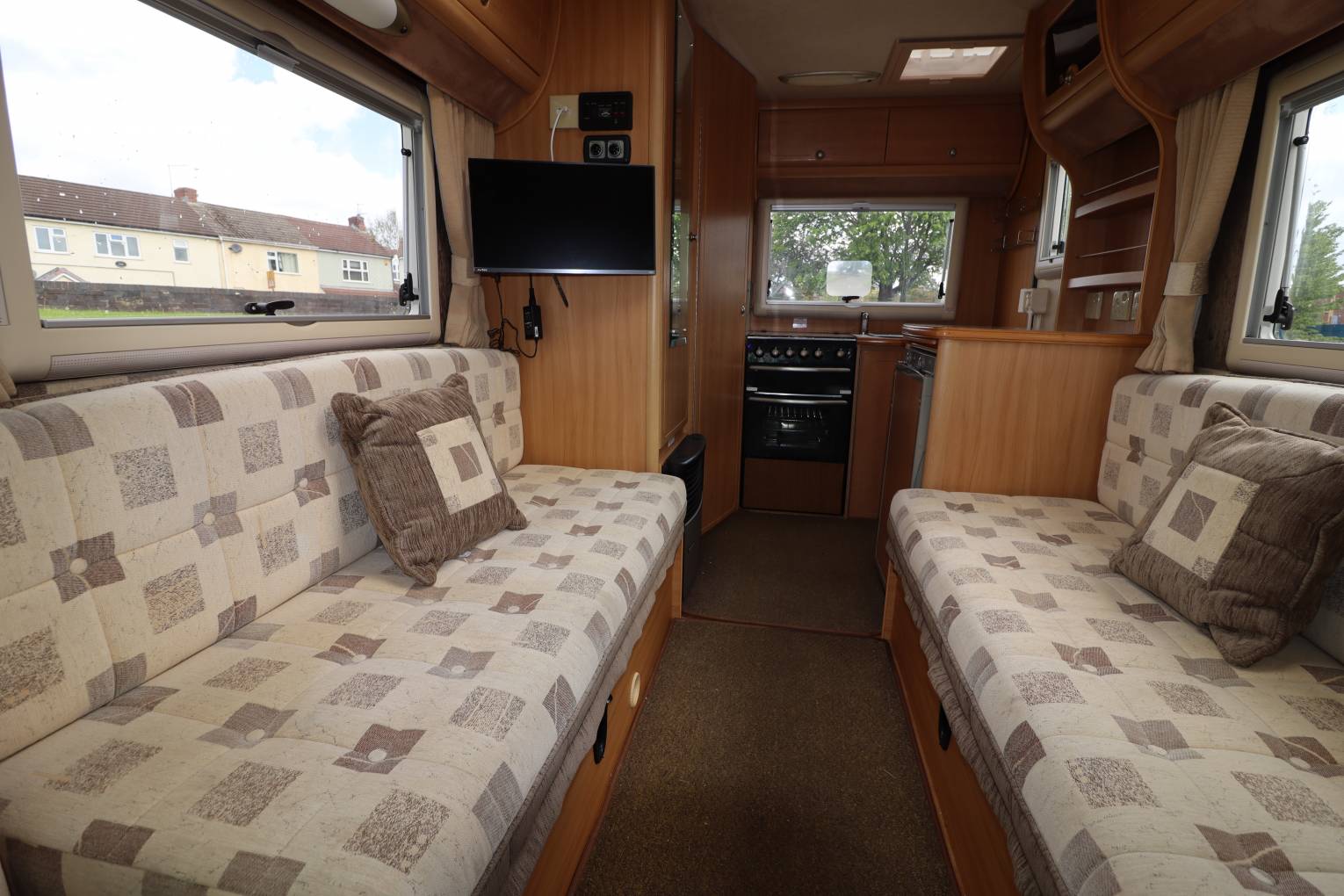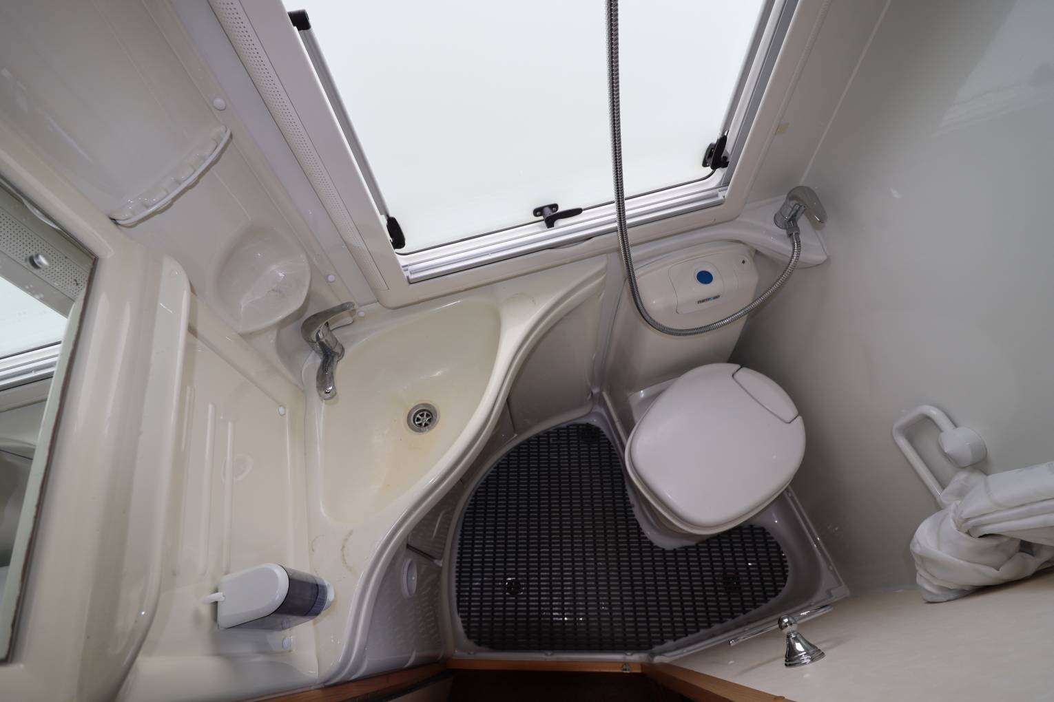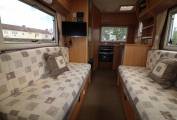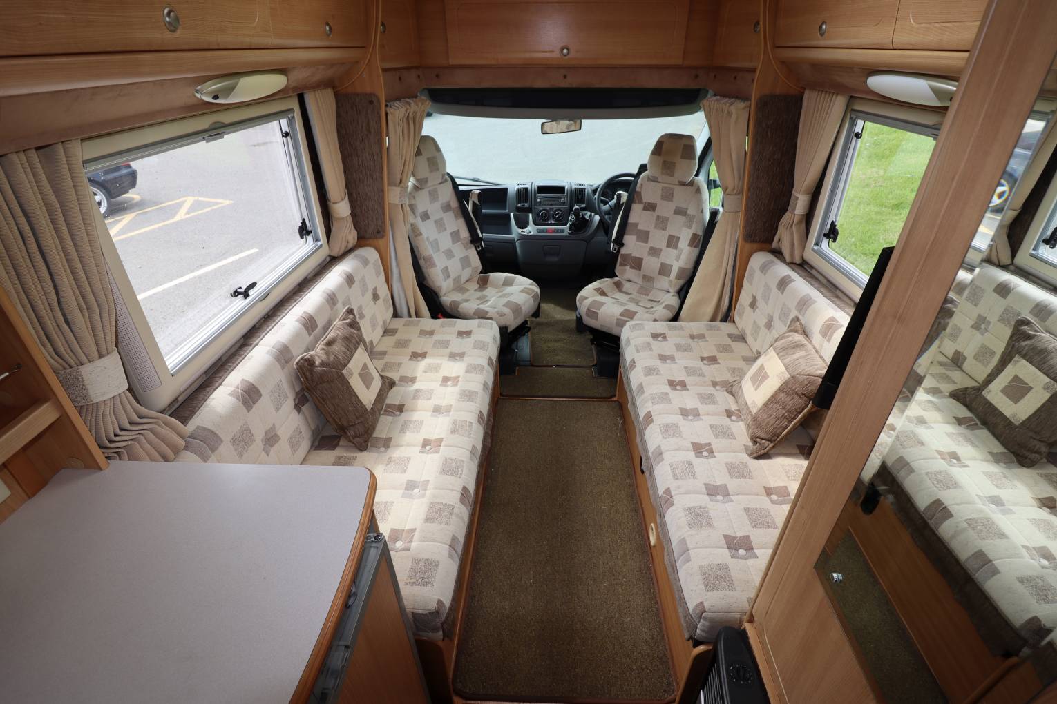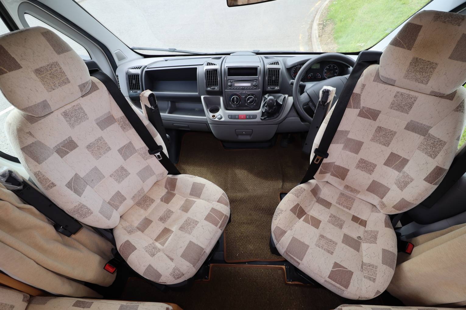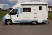 A lovely compact motorhome based on the Auto-Sleeper Nuevo, only 5.5 metres in length it can be used as an every day vehicle. The kitchen is at the rear with oven, hob, grill, sink and fridge. The bathroom is adjacent with shower, toilet and sink. The lounge is open and comfortable with 2 opposing bench seats that pull together to make a double bed. Both front seats swivel making an open and spacious living area.