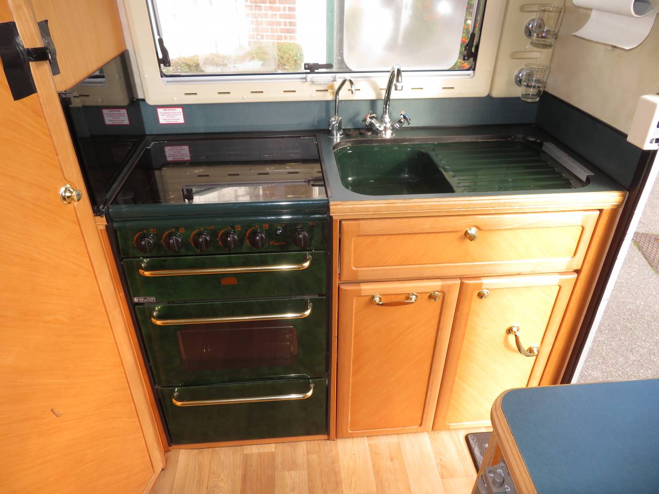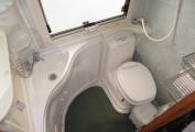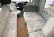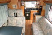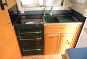 At the rear of the motorhome is a well equipped kitchen. This features an oven, grill and hob with 4 gas burners as well as a microwave oven, 3-way fridge freezer and sink with mixer tap. The motorhome also has plenty of cupboard space for all your utensils and ingredients as well as additional fold up preparation tops to prepare things on.