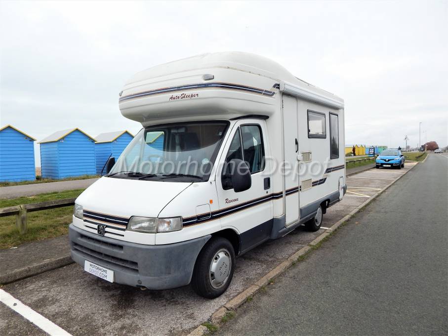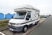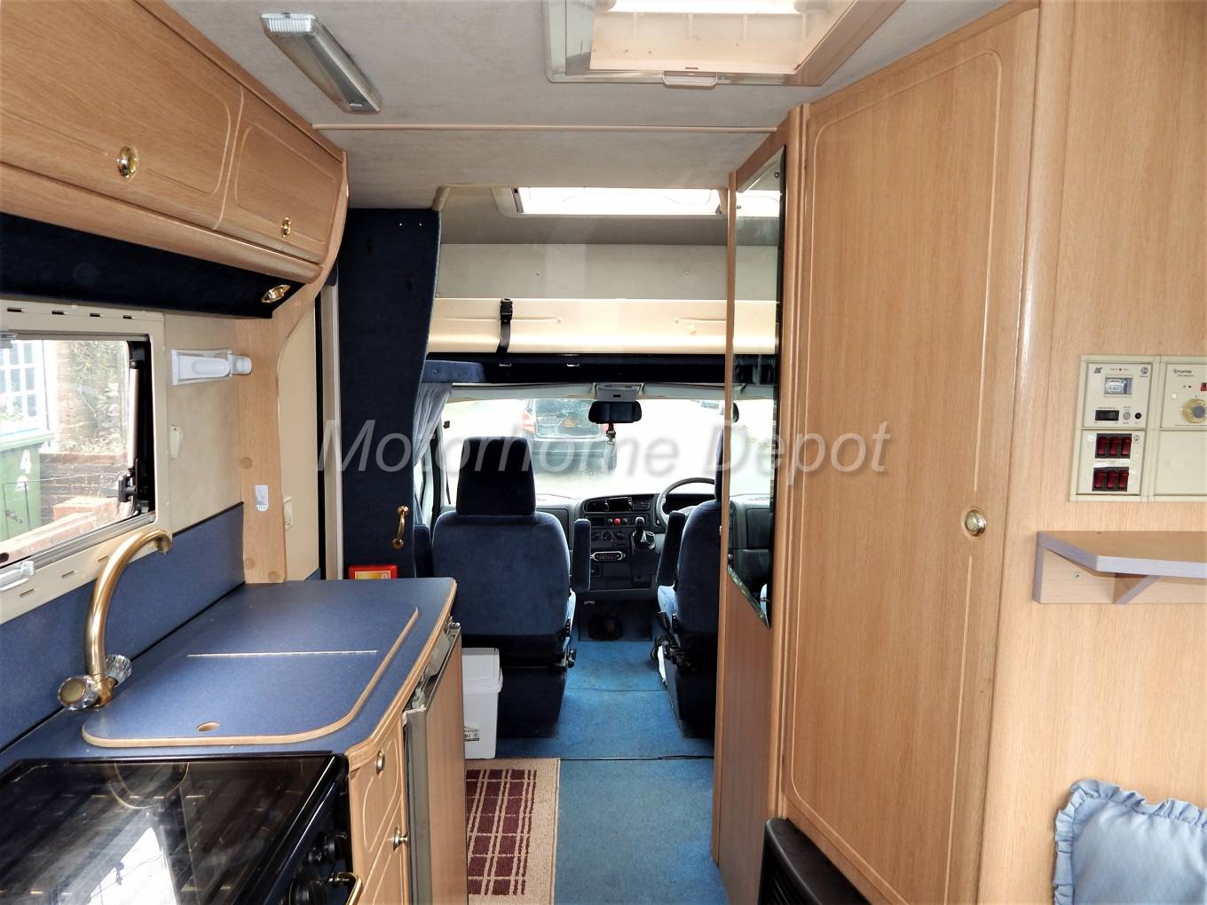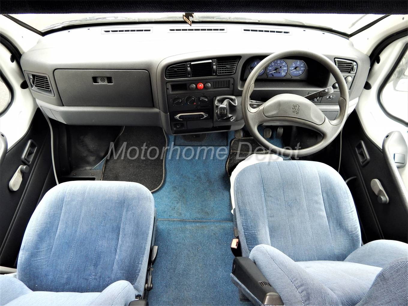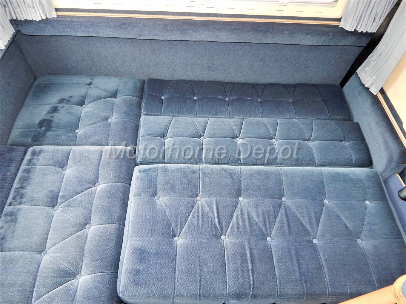 The Auto-Sleepers Ravenna with the popular rear lounge layout. Based on the Peugeot Boxer chassis with the 1.9 litre turbo diesel engine & a 5 speed manual gear box. It comes with a well stamped service book including 8 mechanical services the last having been carried out 07/21 at 53842 miles. Last Habitation check 03/21 by HAB Check. Cam Belt Kit 05/18 at 51087 miles. The cab benefits from: Power Assisted Steering; CD radio head unit; reverse camera screen with 2 views; passenger seat rotates to face rear, there is an occasional table that can be fixed here for roadside refreshment. Over the cab is a large double bed that can accessed by a folding metal ladder. The bed can be reduced is size while travelling to give good access to the cab.