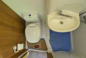 A large washroom is located immediately opposite the Habitation door, which consists of a built-in washbasin with chrome mixer tap, a Thetford cassette swivelling toilet with fresh water flush and SOG extractor fan, plus a good sized separate shower cubicle with folding walls to enclose.