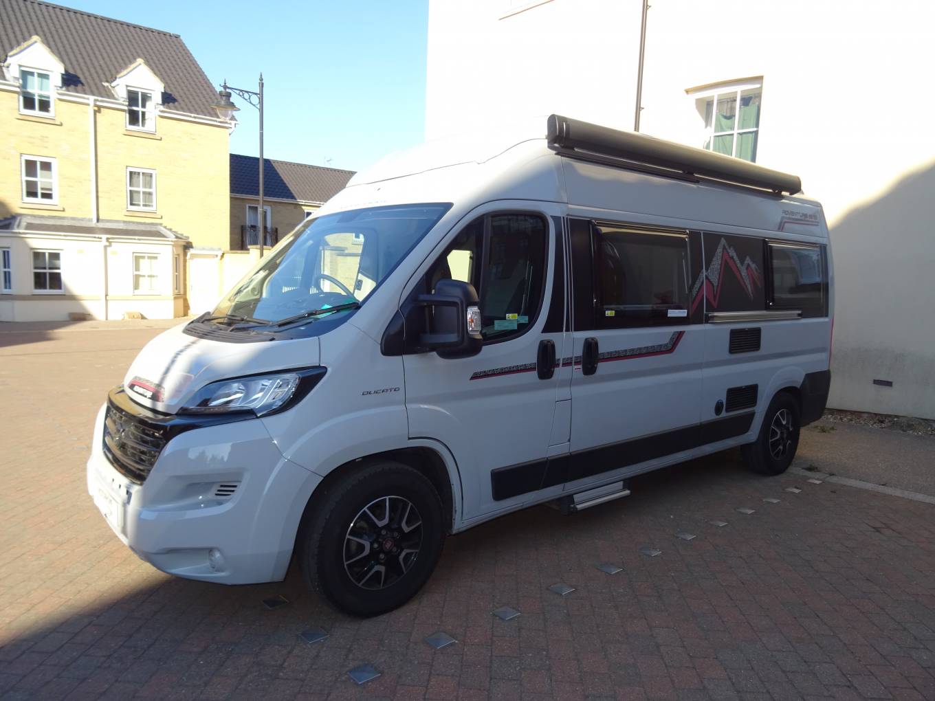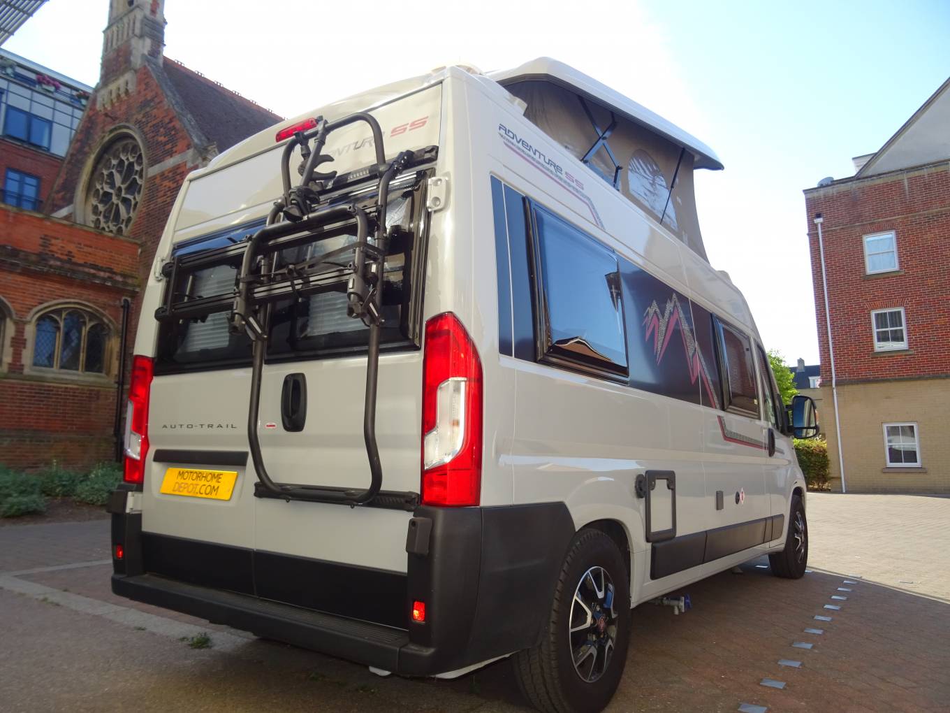 This lovely example of the Auto-Trail Adventure 55 Automatic sleeps up to four in a compact campervan. This high speck camper has a lot to offer. As you enter through the side door to the right you have the kitchen area that has all you need, 2 gas rings, sink with glass lid, fridge with freezer compartment, oven /grill, plenty of storage. Moving to the back there is a good size lounge seating area that also makes into double bed with a wall mounted television. The pop-top roof bed which forms a bunk bed layout gives you a versatile sleeping space for two. Moving round is the well equipped washroom with shower and fold down sink. Other great features automatic gearbox, cab air con, cruise control, electric step, large wind out awning, auto gas, alloy wheels, blinds. tracker, solar panel, 2 leisure batteries, removable carpets, This is a very sought after camper with a great layout.