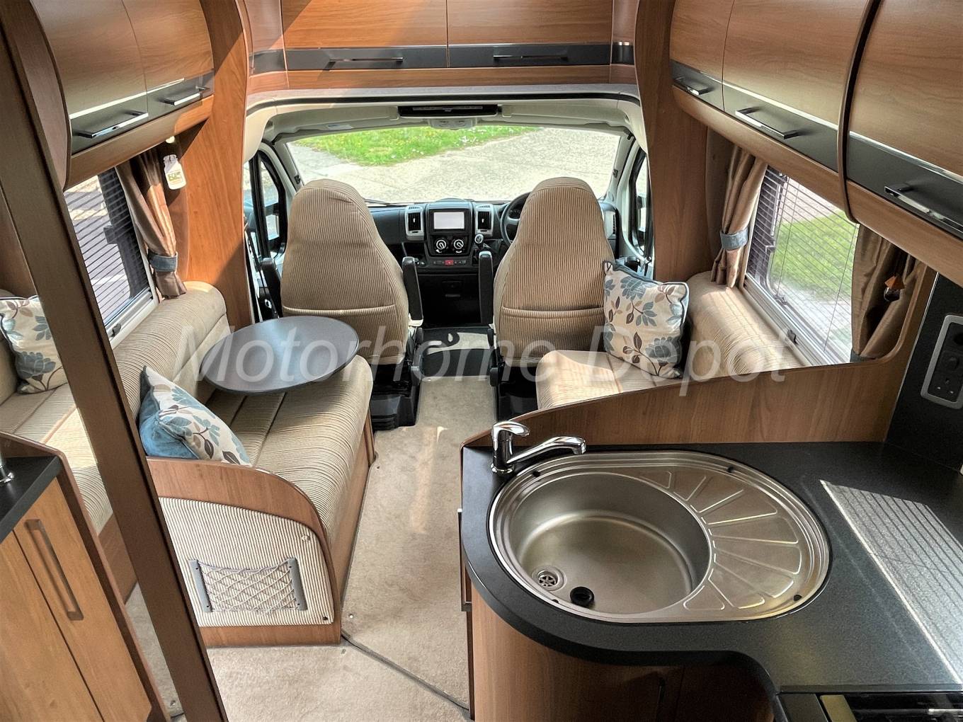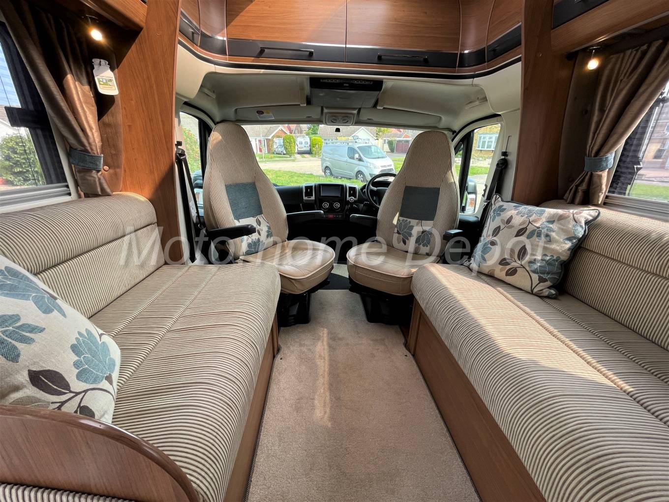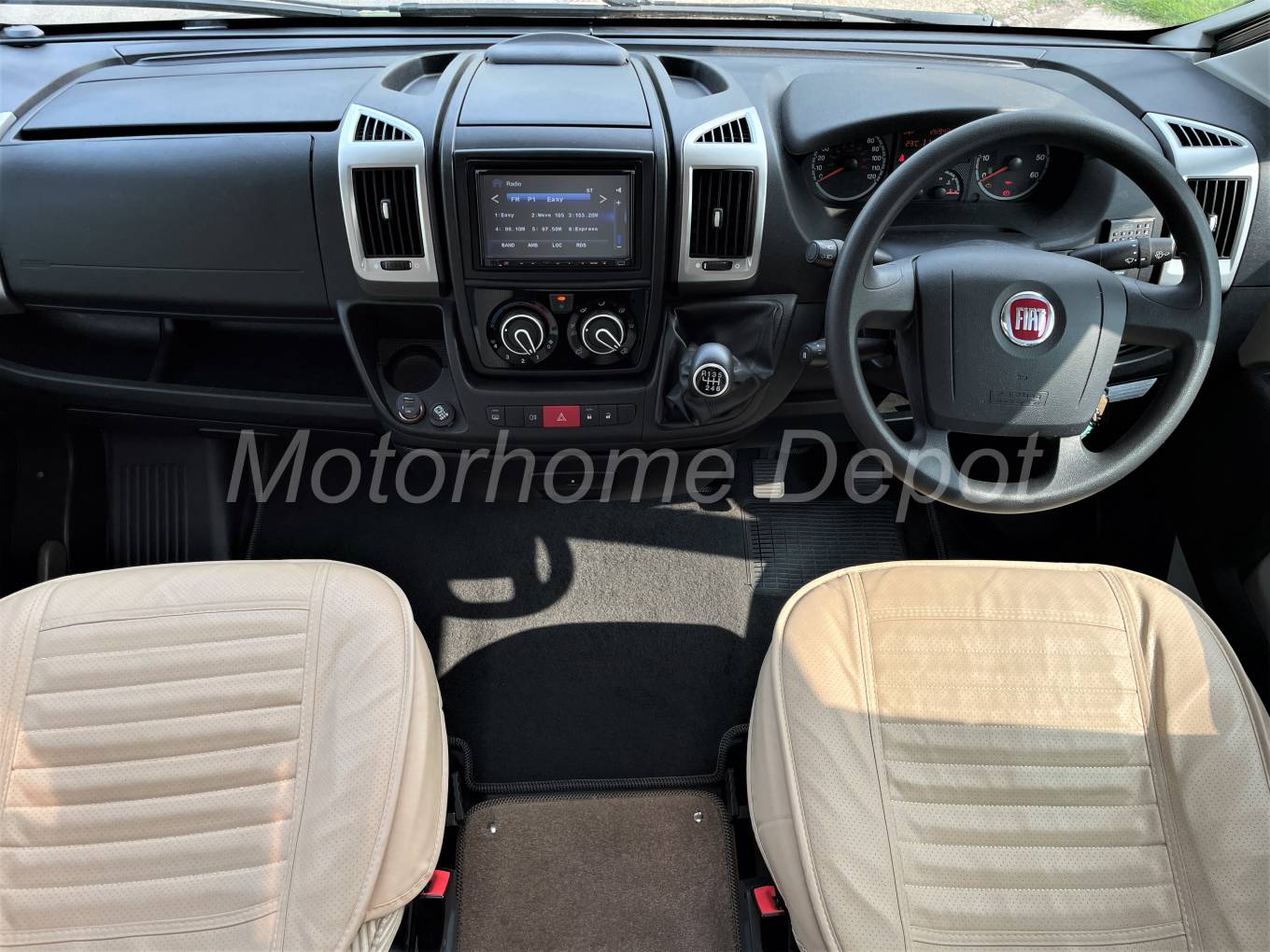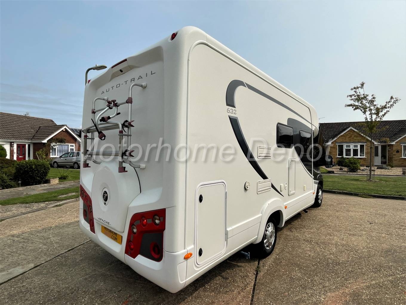 The Auto-Trail Apache 632 Low Line built on the ever popular Fiat Ducato chassis with the 2.3 Ltr Multijet Turbo Diesel engine in the 130 BHP form with the 6 Speed manual gearbox. With only 26943 miles from new it comes with a good service history including 6 Mechanical services the last being 10/21 at 26015 miles. 5 Habitation records the last being 06/22. The cab has a good level of equipment with; cruise control; central locking; air conditioning; electric front windows; electric mirrors; Factory fit Multi Media system including: Bluetooth; DVD; CD; Navigation; rear view screen; Remis Blinds to front & side screens.