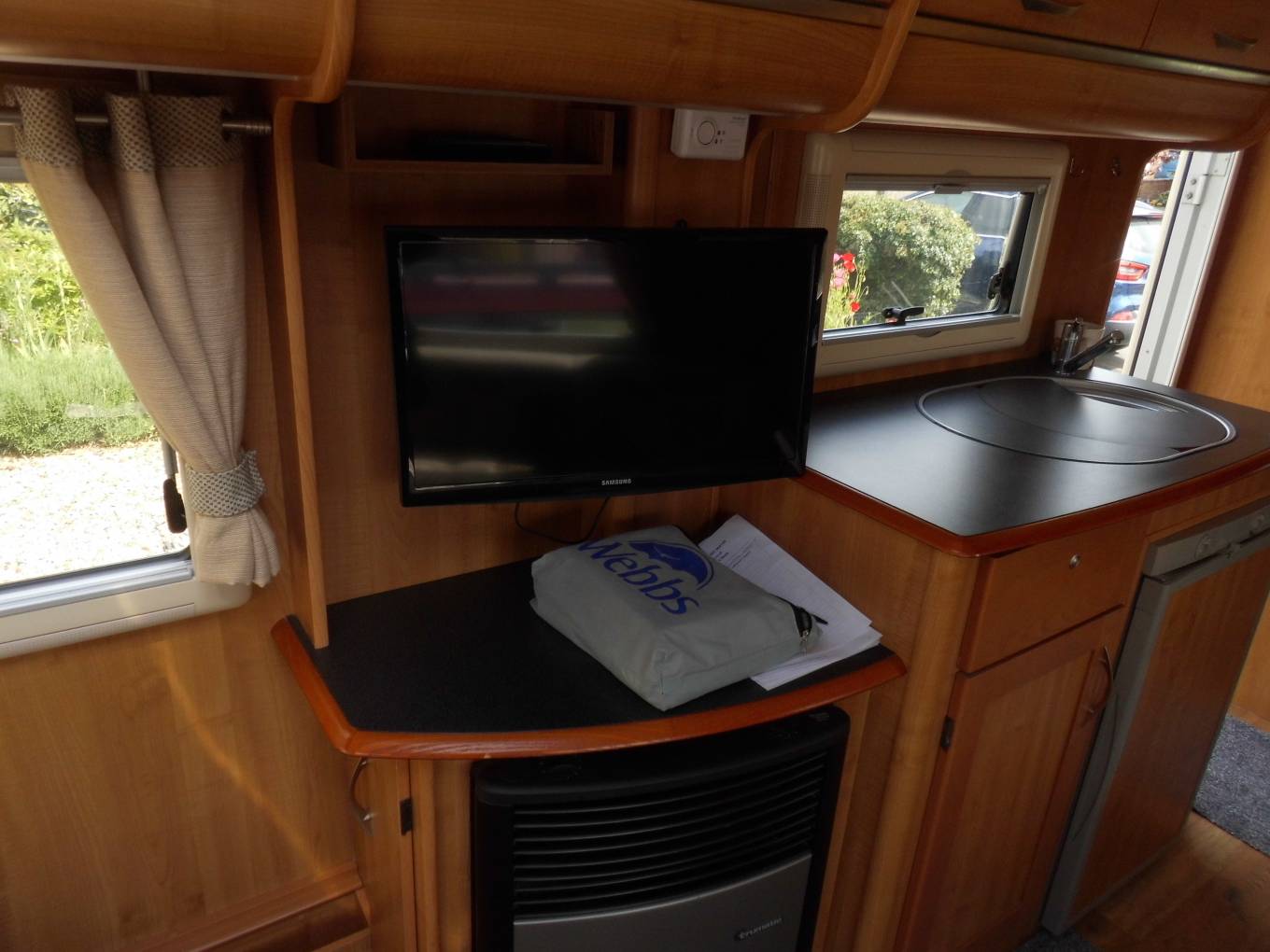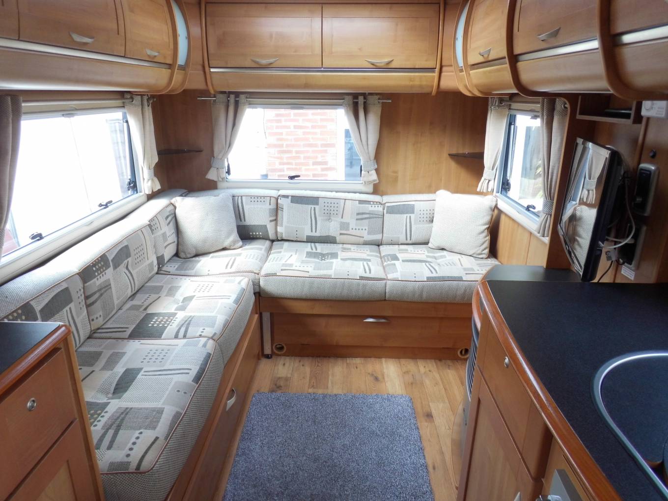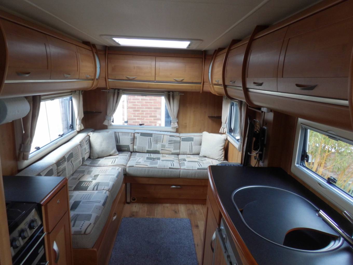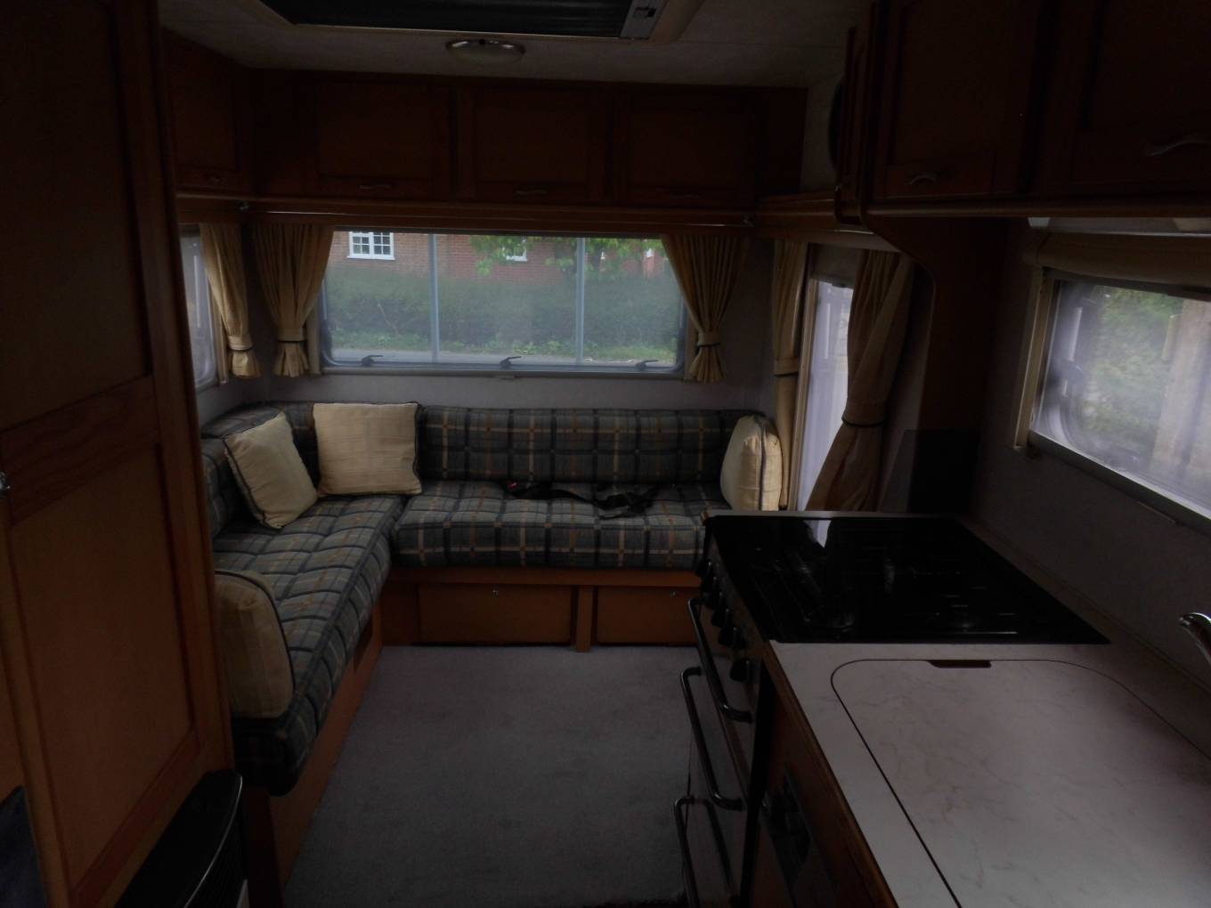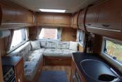 This is a very clean example of the popular Apache 634 with the L shaped rear lounge making it especially spacious, offering an exceptionally inviting seating area with lots of light and air. There is good storage underneath the seating, with external access from one side, ideal for outdoor items, while the double bed is quick and easy to make up yet still leaves some seating available.