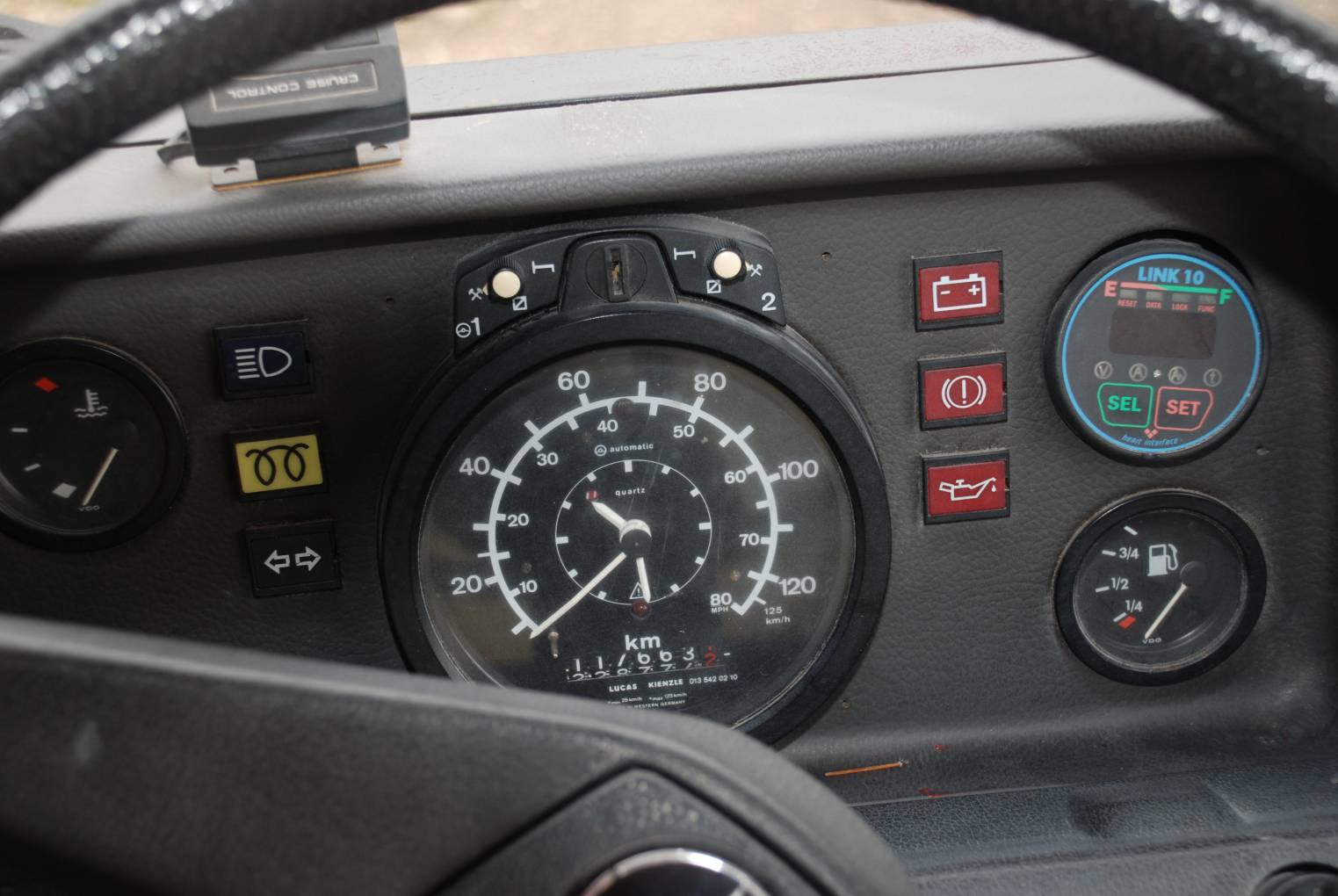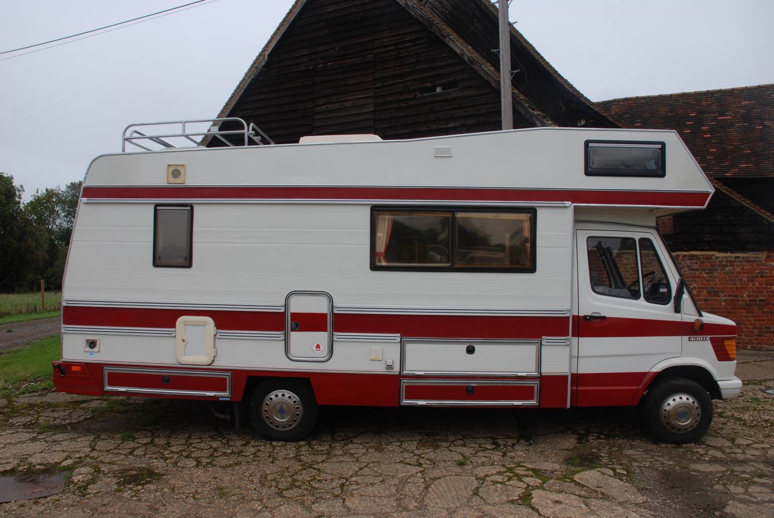 Outside the vehicle is finished in striking red and white paint with fetching Mercedes spare wheel cover, rear ladder to roof rack, it very much looks and feels the part of a long legged tourer.
