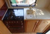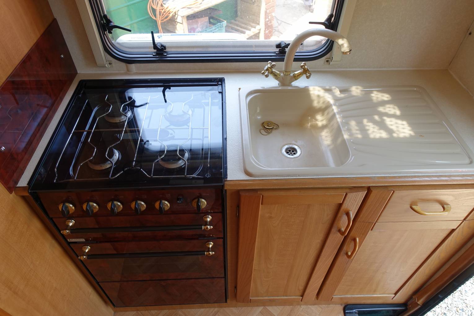 a 4-ring gas hob with separate oven and grill. A large stow-away fold-up table