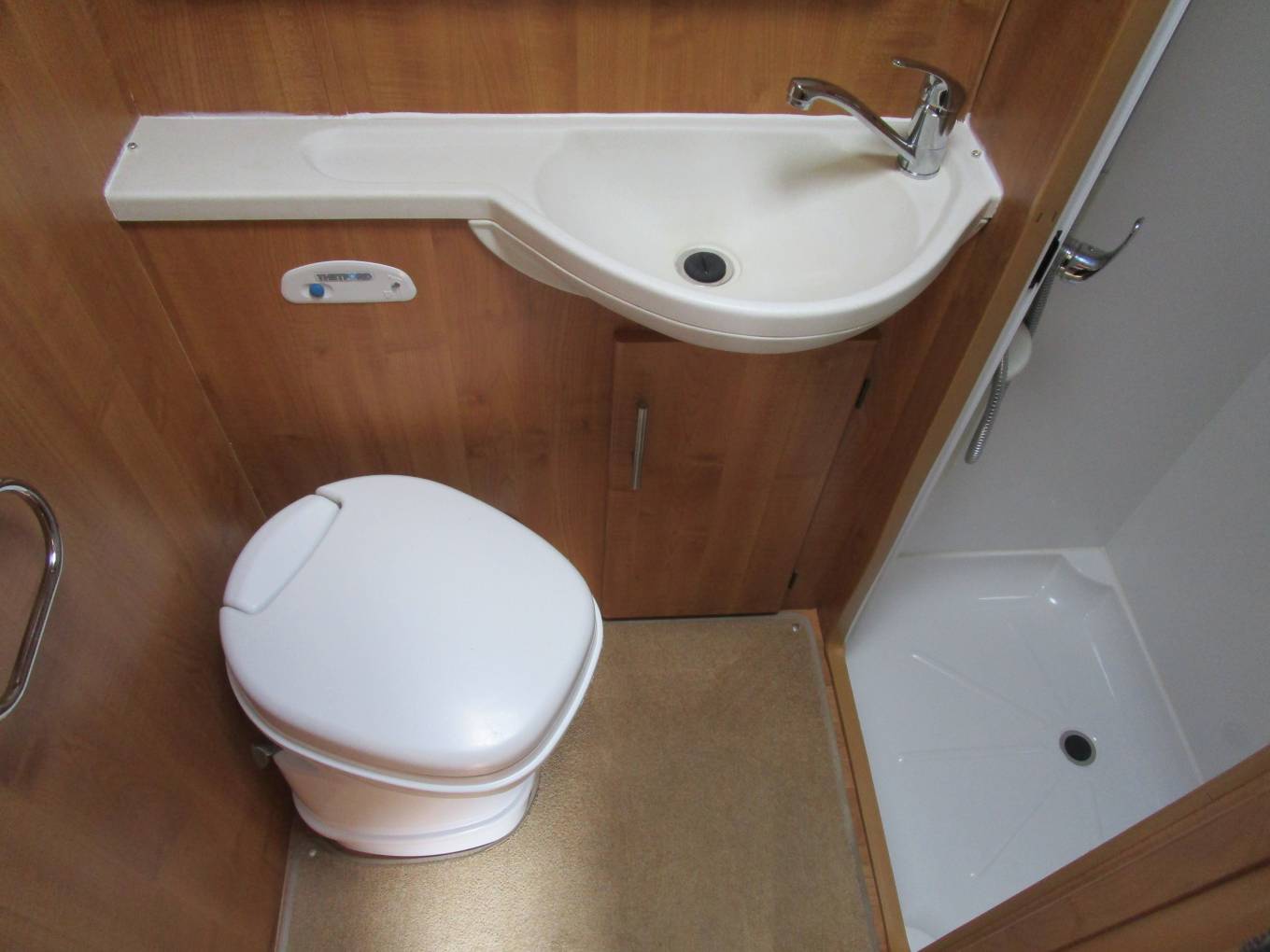 comprises of Thetford cassette toilet, sink with vanity unit and separate