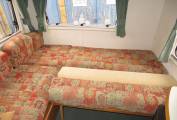 The habitation area is the star of this motorhome. The layout is ideal if you are looking for space and comfort inside the motorhome. Starting at the rear of the motorhome you have a wonderful L shaped lounge, the perfect place to put your feet up and enjoy the panoramic views. There is also a folding table that can be set up in the middle to create a great place to enjoy a meal or snack. This area also pulls out to make up a good sized double bed measuring 206cm long x 120cm wide.