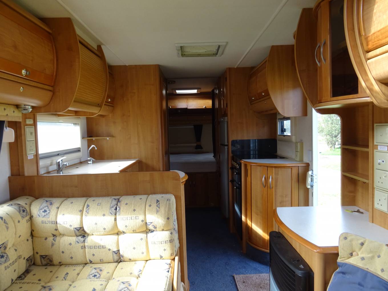 The kitchen also has a feeling of space, with one side incorporating the 3 way Fridge and freezer, oven, grill and hob with workspace at the side and more storage. The other "L" shaped area has a large sink / draining board with a separate rinse tap, ample storage with pull out wire racking and drawers, finished with a worksurface and granite heat plate.
