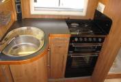 This Auto-Trail Comanche Tag Axle motorhome has everything you need for you and your travelling party to feel right at home. Upon entering the habitation you have the light and roomy lounge with a L-shaped sofa and a long seat bench with a removable table and a small swivel coffee table you have plenty of space to get the whole family round for meals, you also have the two captain swivel seats for additional seating. By night this area converts to a large double bed. Over the cab you have a generous double bed, also above the cab you have a drop down TV.
