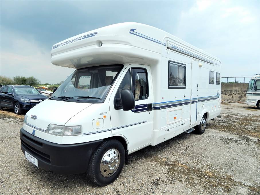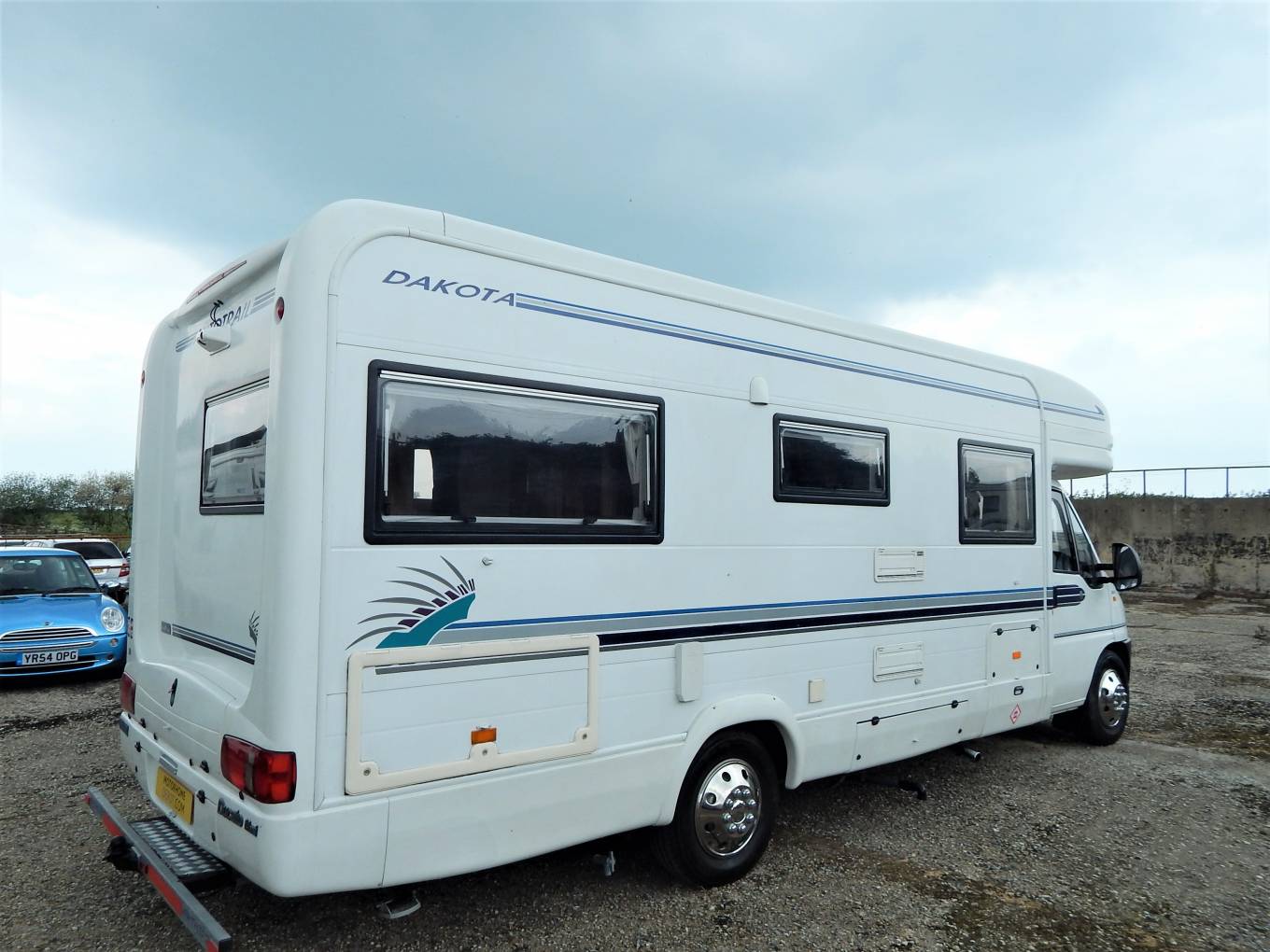 Auto-Trail's ever popular Dakota model, based on the 2.8D Fiat Ducato chassis with a manual 5 speed gearbox. With only 4 owners from new it benefits from a good service history, including 13 Stamps in the book including a Cam Belt in 01/14. The cab also benefits from a CD/Radio player, Electric front windows and mirrors, reverse camera, parking sensors, removable steering wheel, Sigma alarm.