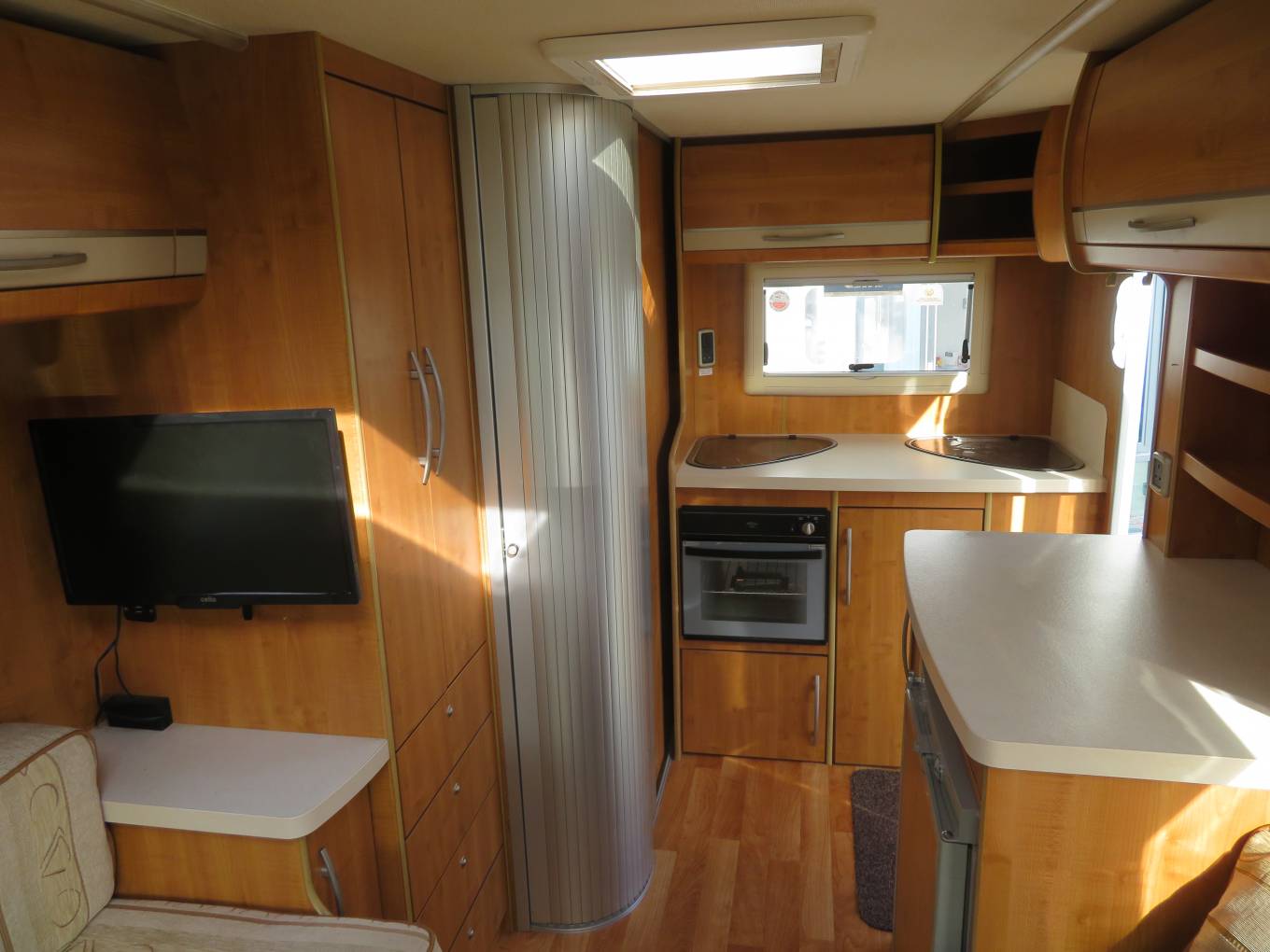 The Popular Auto trail 590 Excel is a 2 berth compact motorhome measuring just 5.88m in length but with an enormous amount of internal space this 590 model has much to offer and is presented in nice condition. The specification includes a large front lounge area with twin swivel chairs and is complimented by a TV, LED lighting and skylight. Located at the rear is the kitchen area with full cooker, sink, 3 way fridge and hot water. Adjacent to the kitchen is a spacious washroom with separate shower cubicle. Other features include Fiat Ducato 3300kg chassis with a 2.2L engine and manual transmission, awning, entrance handle, gas locker, reverse camera, outside storage locker, solar panel, webasto diesel heating, TV aerial, cruise control, and cab shades .
