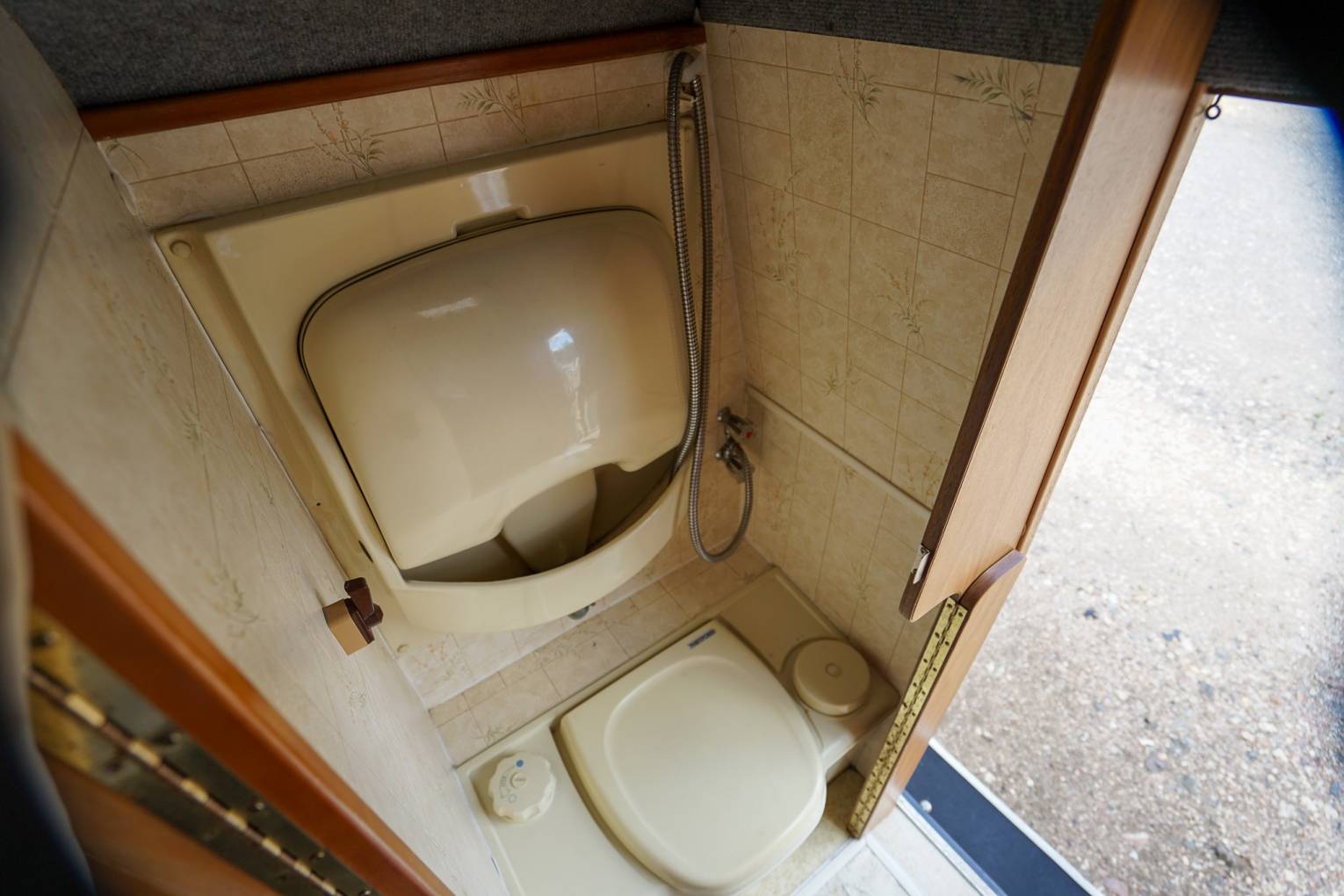 with Thetford Cassette toilet, fold down wash basin and shower. Opposite is a