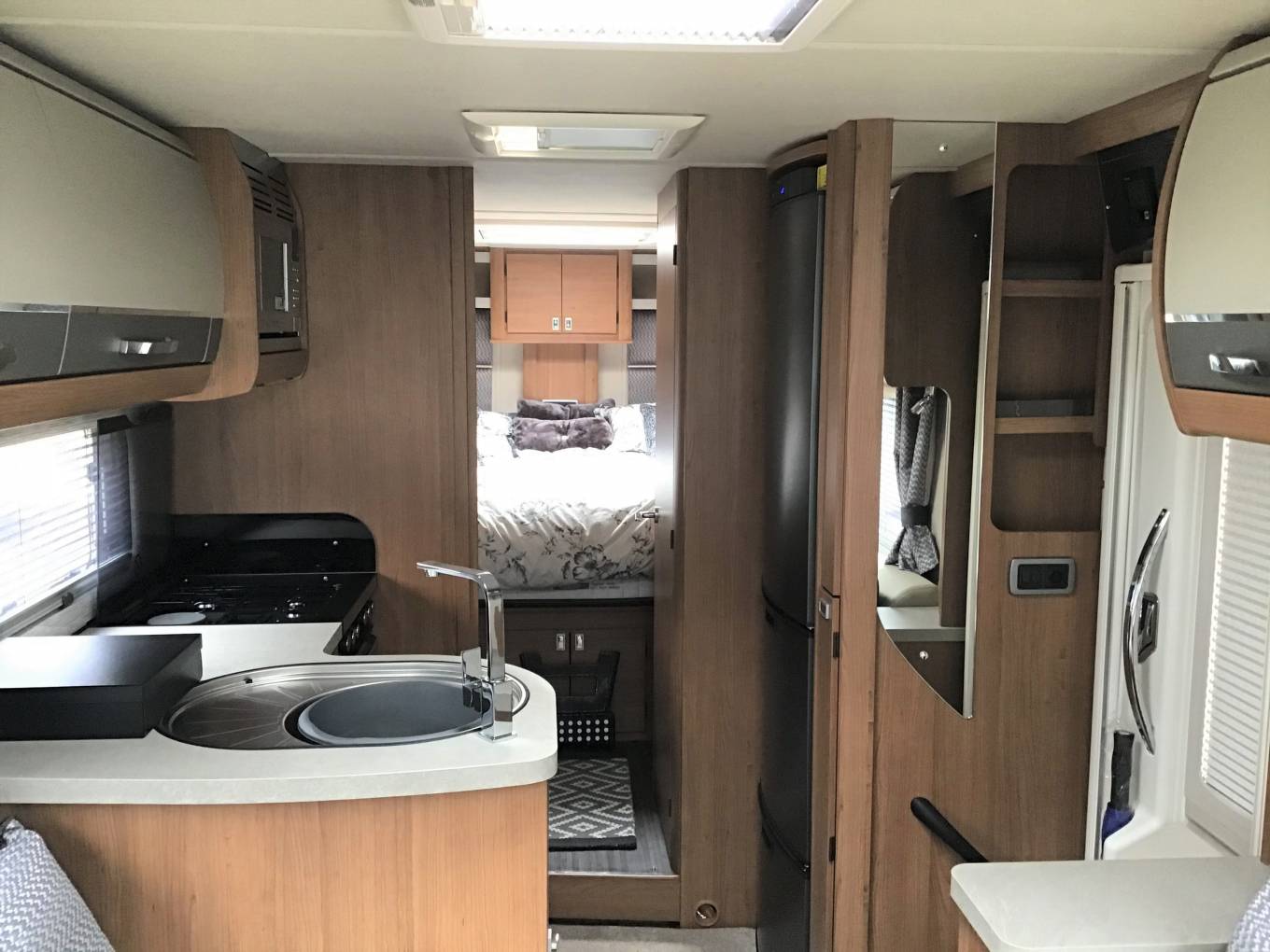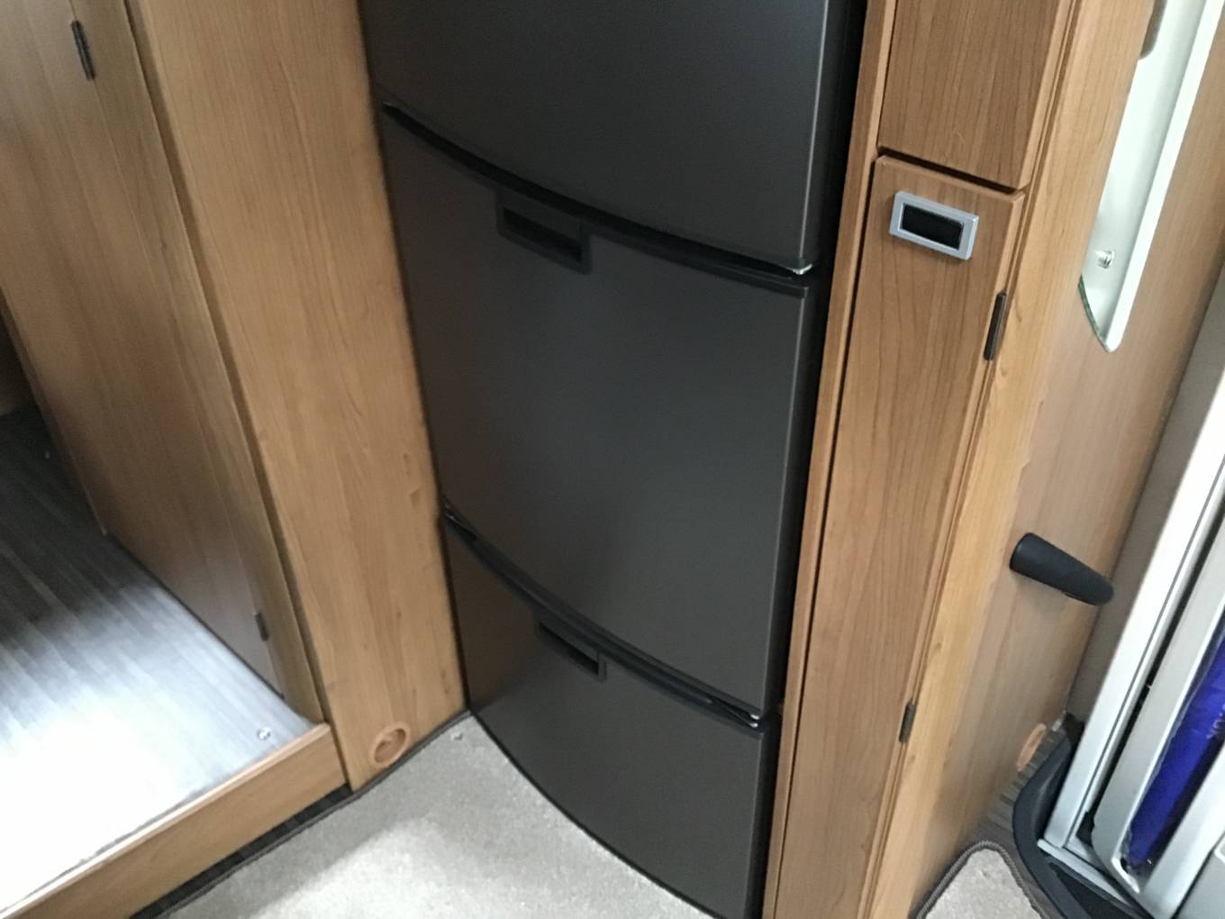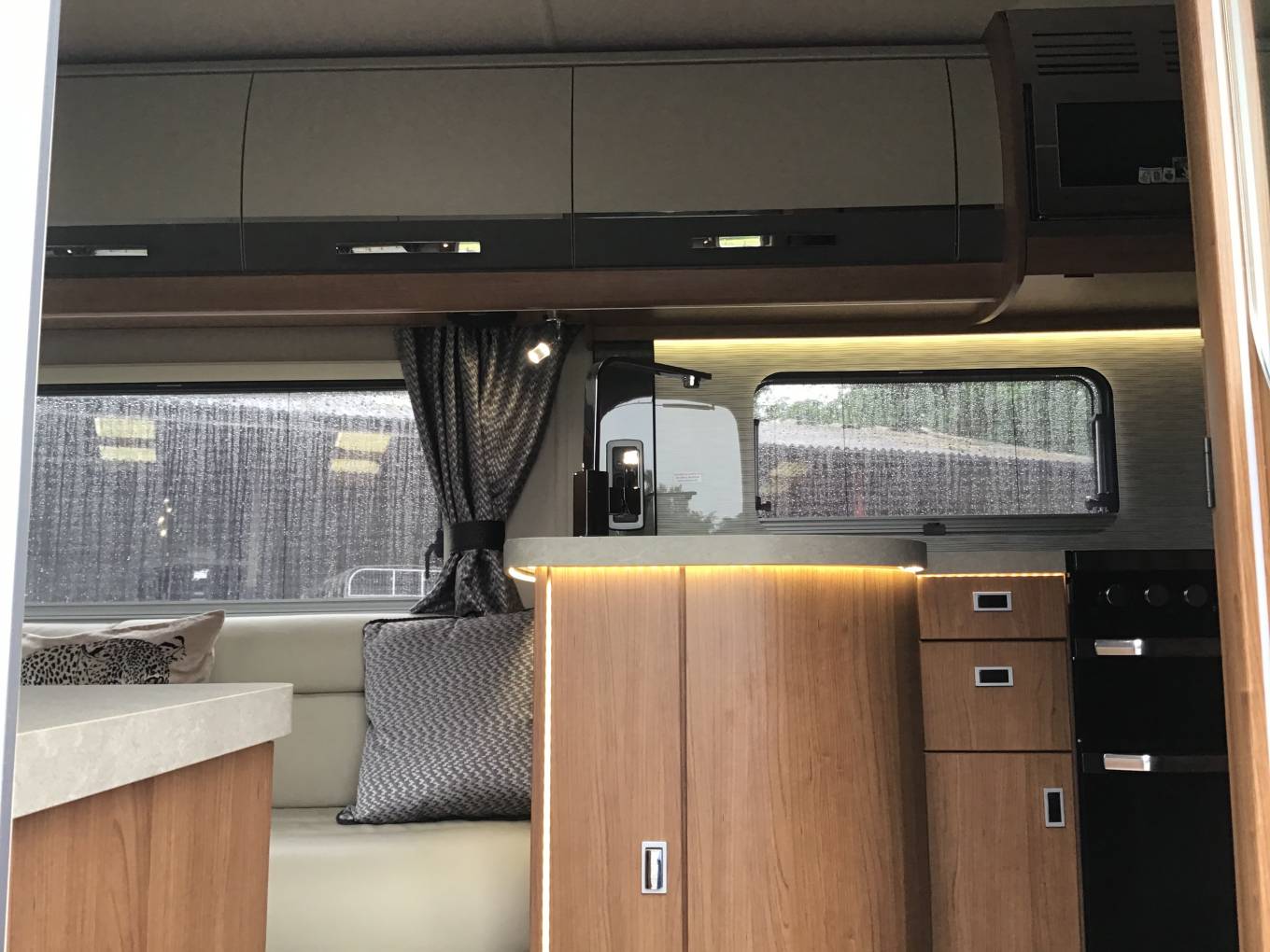 Don't let the compact kitchen deceive you, as the extra sized fridge, cooling drawer and extra storage offers plenty opposite the kitchen area for all your storage needs. They have even managed to fit in a microwave, oven, grill, hob, sink with drainer and preparation area.
