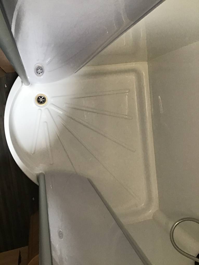 The washroom is situated between the kitchen and bedroom and has been described as a luxury ensuite as you'll note above - and I would agree. It feels very luxurious and offers plentiful space to change and bathe.