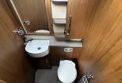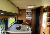 The kitchen area is behind the Centre Dinette Area and across from the habitation door which allows extra ventilation when cooking a hearty meal for any occasion and comes with 3 Gas Hobs, 1 Electric Plate, Microwave, Hot and Cold Mixer Tap, Oven and Grill and a Large Modern Fridge with great freezer space.