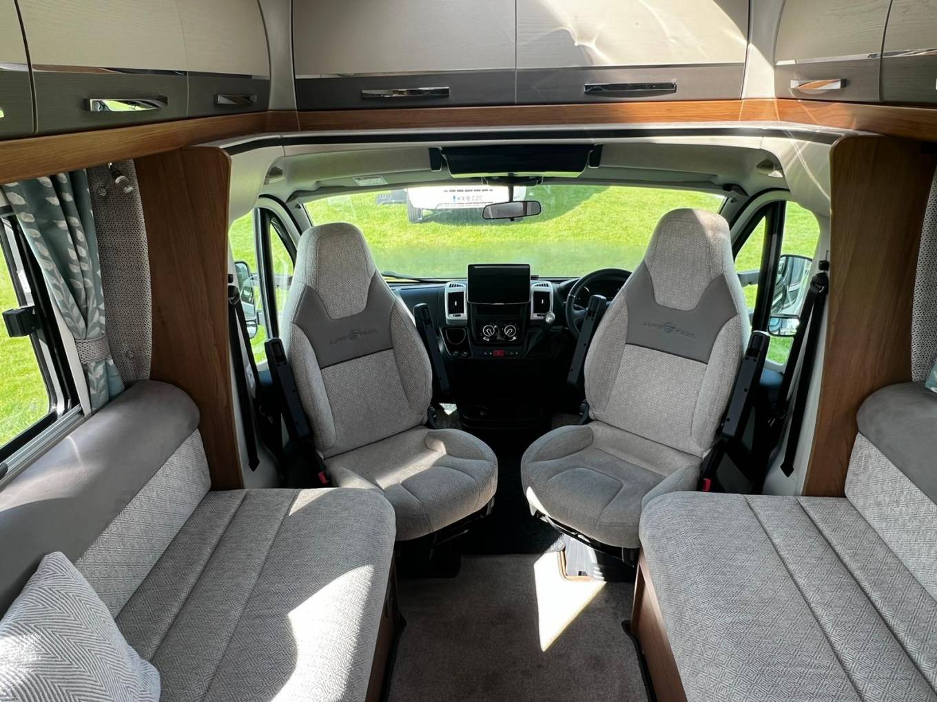 This Motorhome comes with an MOT until February and has had an engine service and habitation check done this year, to give you an extra piece of mind and comes with many desired and fantastic extras that include: Cab Air, Wind Out Awning, Satelitte System, 11” Alpine head unit & fitted inverter, Reversing Camera, Self-Levelling System, Lithium Leisure Battery, Solar Panel, Factory Fitted Cab and Habitation Blackout Blinds and Flyscreens for the Habitation Windows, 2 Sets of Keys, Transferrable Tracker, Cobra Alarm, GASLOW System, and more!