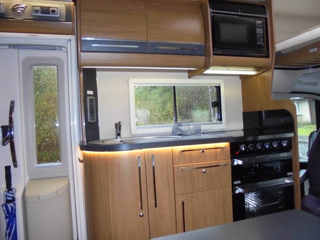 combination oven grill, microwave, large Dometic tower fridge freezer, sink and