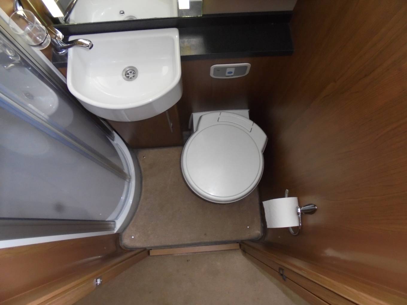 table. Opposite is the large washroom with a separate shower cubicle, toilet,