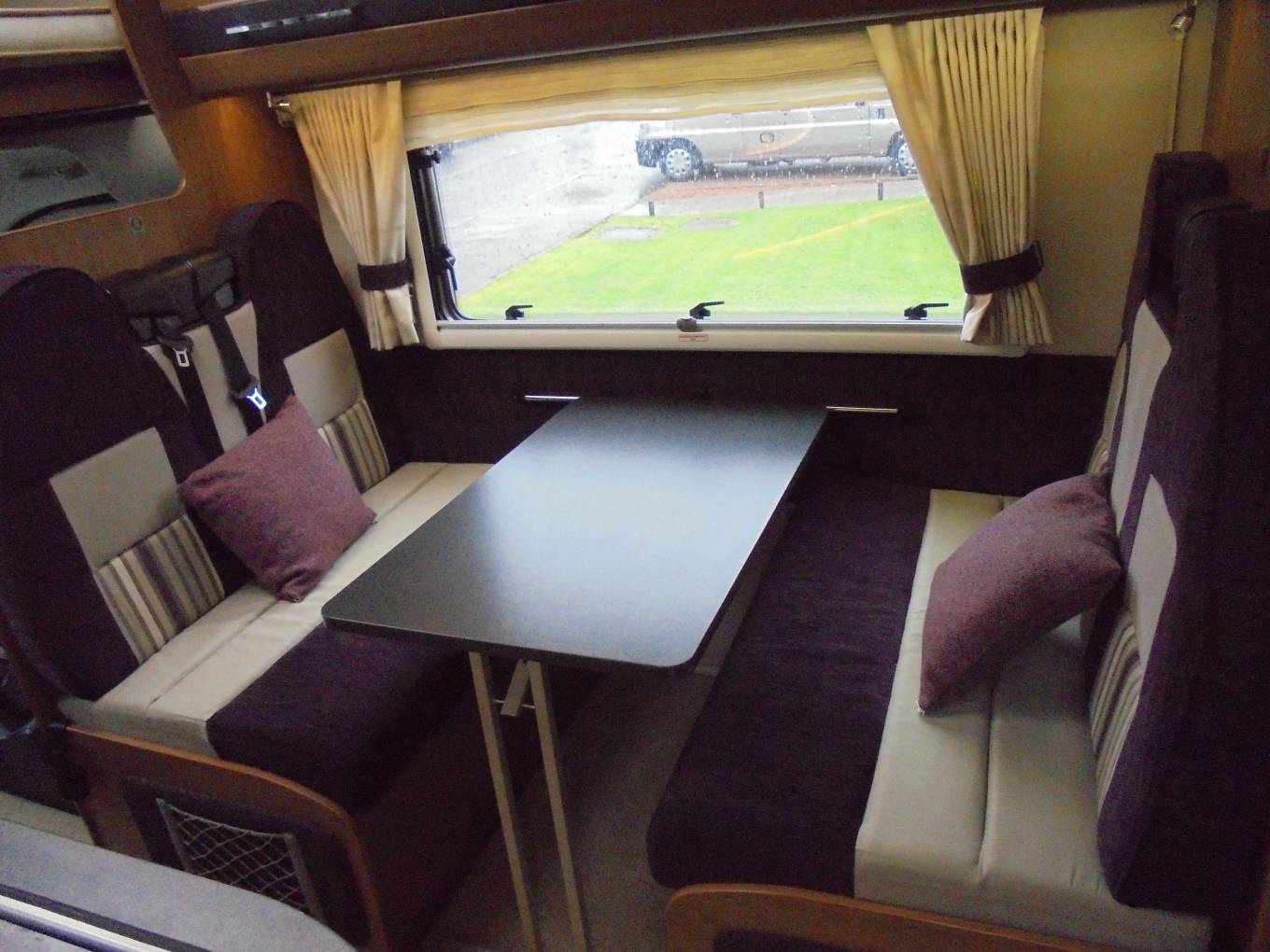 the rest of the motorhome. Adjacent comes the double dinette area, with 4