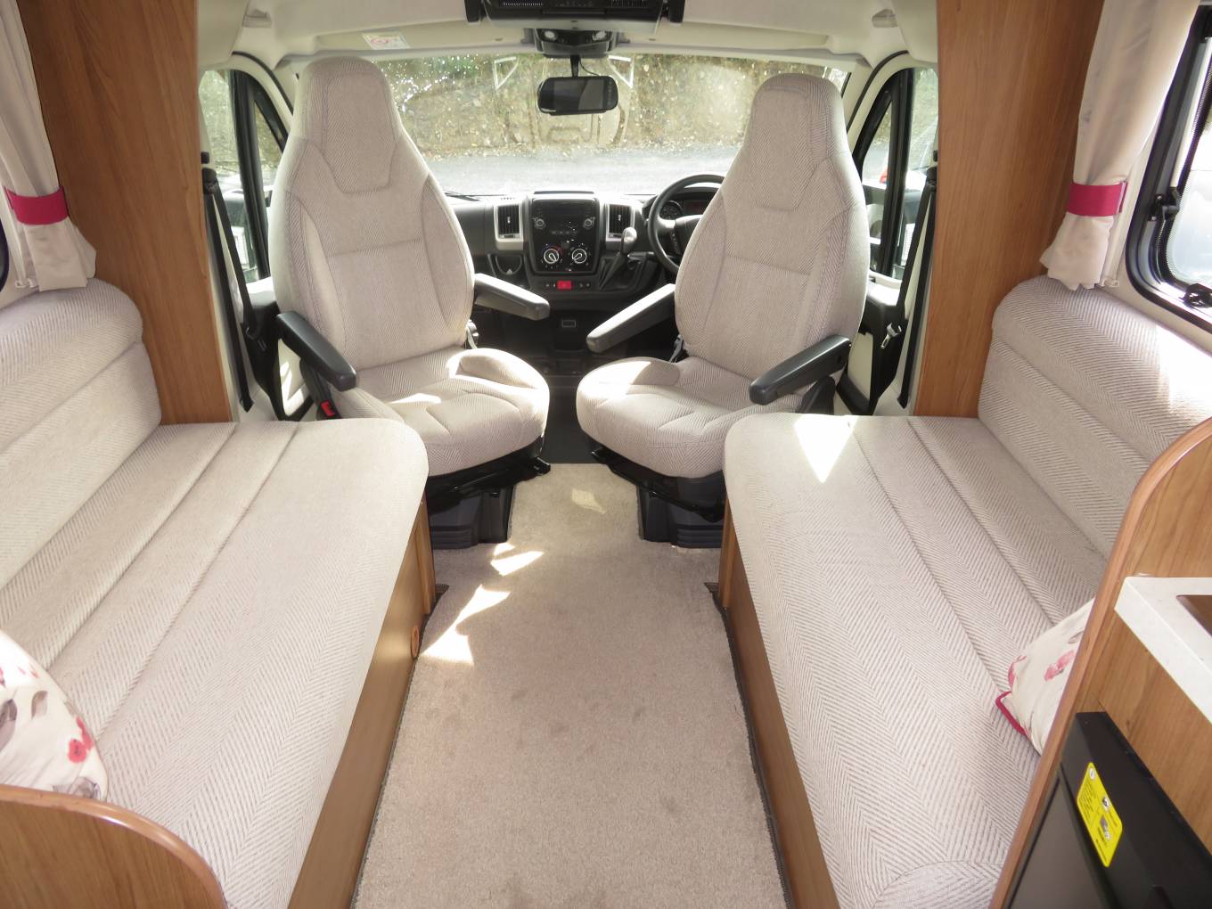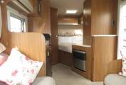The motorhome is built on the ever popular Fiat Ducato chassis and has the Comfort-matic semi automatic 6 speed gear box with the option of both automatic and manual transmission. It has the powerful 2.3l,150 Bhp engine and comes with cab air conditioning, cruise control and reversing camera. It has an alarm and tracker which will help keep your insurance premiums down.