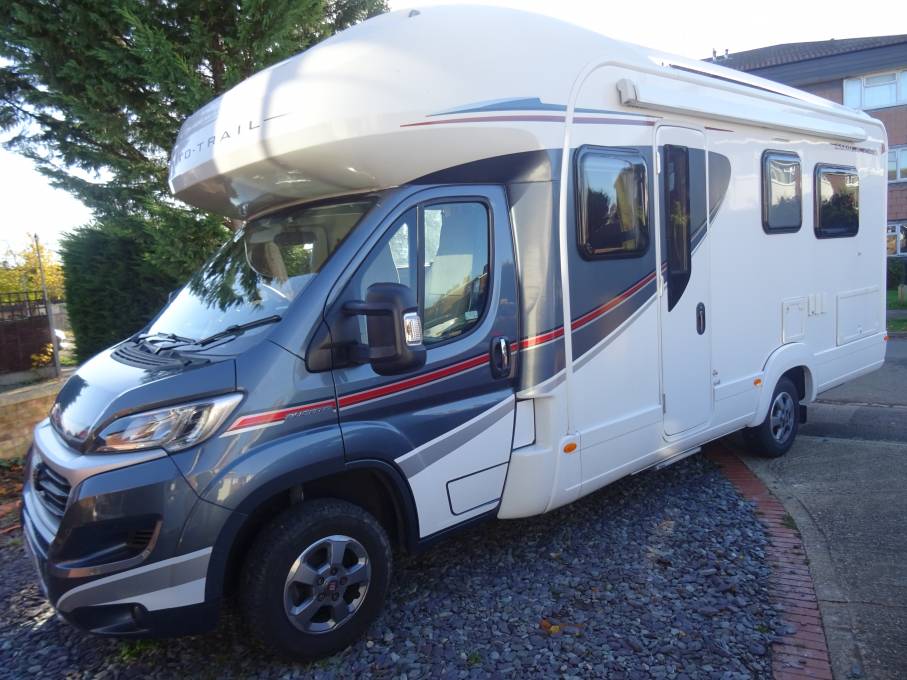 AUTOMATIC - Auto Trail Imala 734 GT. First registered on 18 July 2019, this 734 is in excellent condition throughout. Mileage stands at only 14092, Full service and a new timing belt 15th May 2024. Full MOT till 22 May 2025. It is booked in for a new Hab check on 17th May 2024. It is built on the Fiat Ducato 2.3 diesel at 150 BHP. This motorhome is 7.25 metres long, 2.27 metres wide and 3.03 metres high. The MTPLM is 3500 and the motorhome is near Bedford.