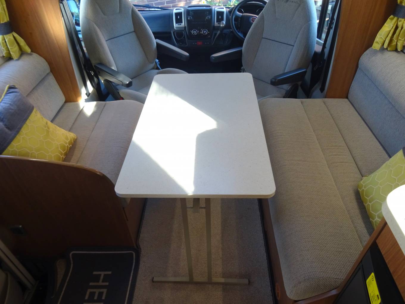Features: Cab - DAB Radio Media Pack including Sat Nav, Bluetooth, USB Point, Screen and Side Reimo Cab Blinds, Reversing Camera with permanent view, Air Con, Tablet Holder, Cruise Control, Twin Cup Holders, Twin Air Bags, Arm Rests, Electric Windows, Steering Wheel Controls, Spare Wheel, Electric Step, Large Area Under Bed Storage accessible from inside and outside. Features: Pull Up 240v Socket Tower, Microwave, Carpets, Curtains with matching Cushions. Extras: GT Pack (100 Watt Solar Panel, Grey Alloys, Wind Out Awning, GT Badge) - Max View Satellite System, Wind Down Bike Rack, BBQ Point, Exterior 240 v Socket and Scorpion Tracker.