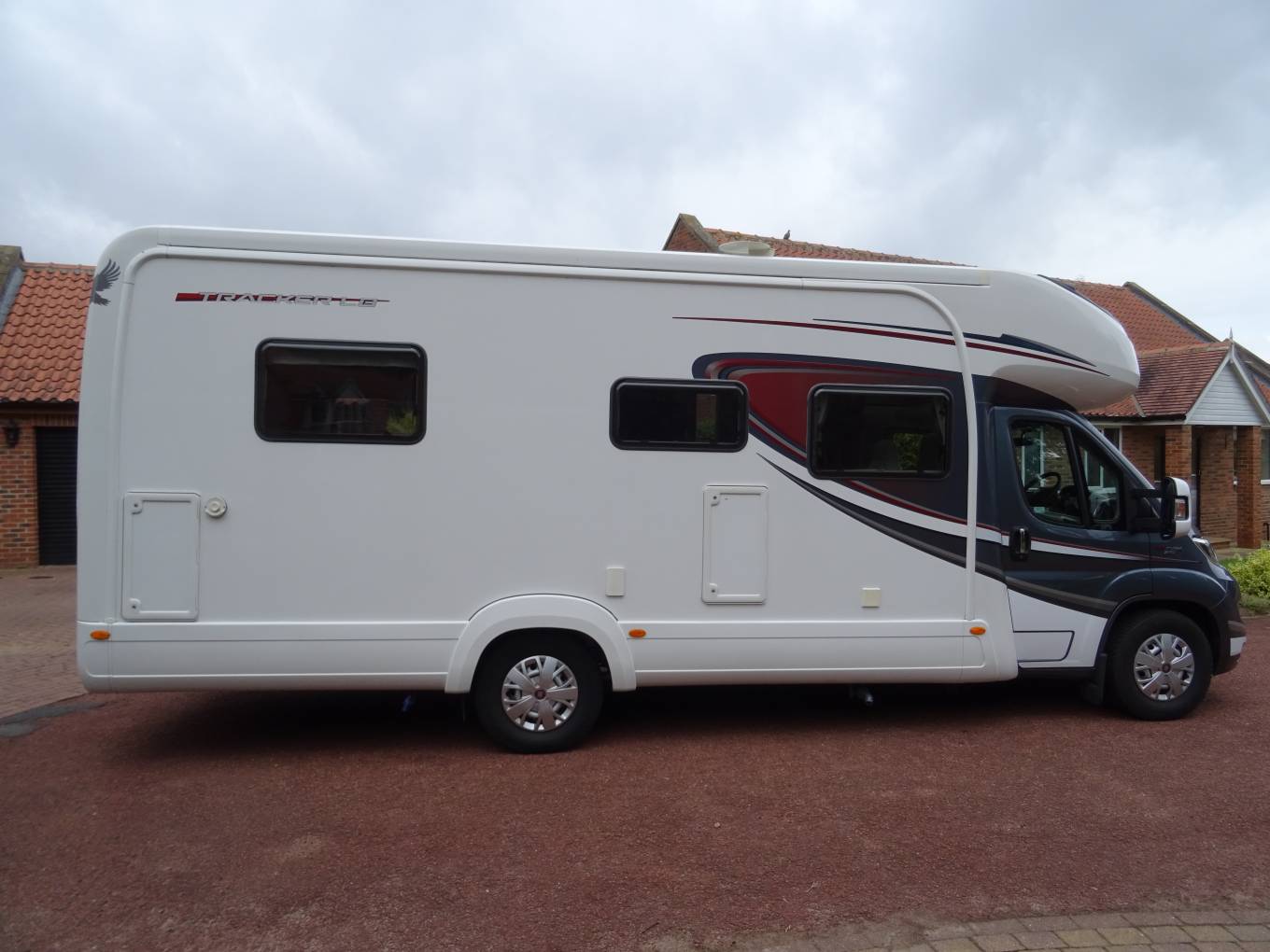 With an over-cab bed a fixed rear double, this spacious Motorhome has all the accommodation you need for 6 people to enjoy a few weeks holiday. Externally, the smart looking paintwork is complimented by a subtle decal of an Indian tracker on the rear, mirror protectors and a removable Witter tow bar, it also benefits from rear parking sensors, rear camera, solar panel to charge the dual leisure batteries and access to a good sized storage area.