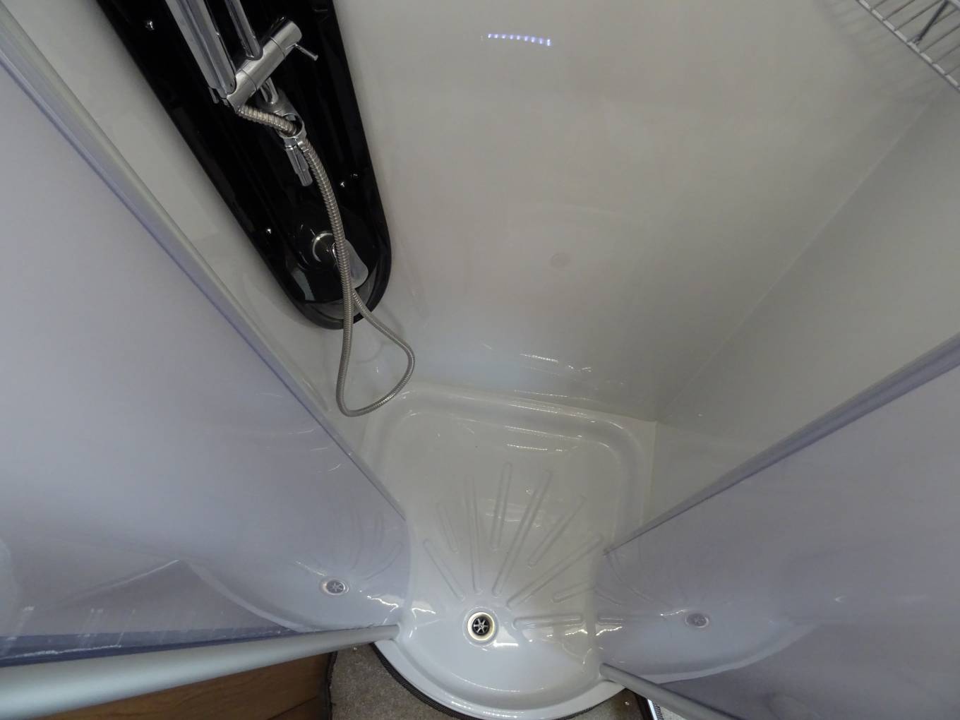 Moving inside the Motorhome, the interior is also immaculate and a credit to its owner - the sleeping accommodation consists of a large fixed double at the rear, a spacious over-cab bed and a central dinette that also converts into a double. The rear sleeping quarters can be screened off to provide a bedroom with en-suite facilities including a separate shower and good sized washroom. There is also plenty of storage throughout the vehicle, including space under the bed for bulky items.