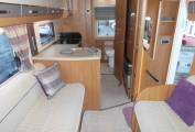 Inside the motorhome the vehicle is immaculately presented and it has a very eye pleasing combination of colours. The upholstery is stylish and spotless and there is a real feeling of light and spaciousness thanks to the large skylights and windows.
