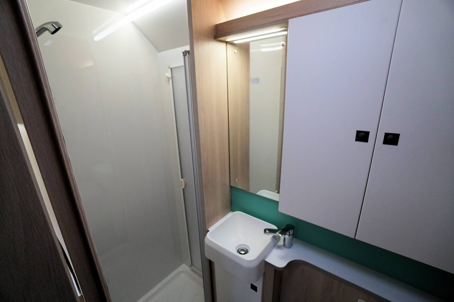 The large front lounge makes use of the two front swivel cab seats to create a large lounge / dining area that converts into a double bed. Above this area is large electric, drop-down bed that is accessed using a folding ladder. The middle of the motorhome is the kitchen area with a 3-burner gas hob, sink with mixer tap, oven with grill and large slimline fridge with freezer compartment. At the rear of the vehicle is the fantastic washroom with Thetford swivel toilet, hand basin, storage cupboards and a separate shower cubicle. The heating and hot water systems are supplied by a Whale unit and there are removeable carpets throughout. The motorhome also has a 12v TV, 100W solar panel, external BBQ point and brackets ready to take a bike rack.