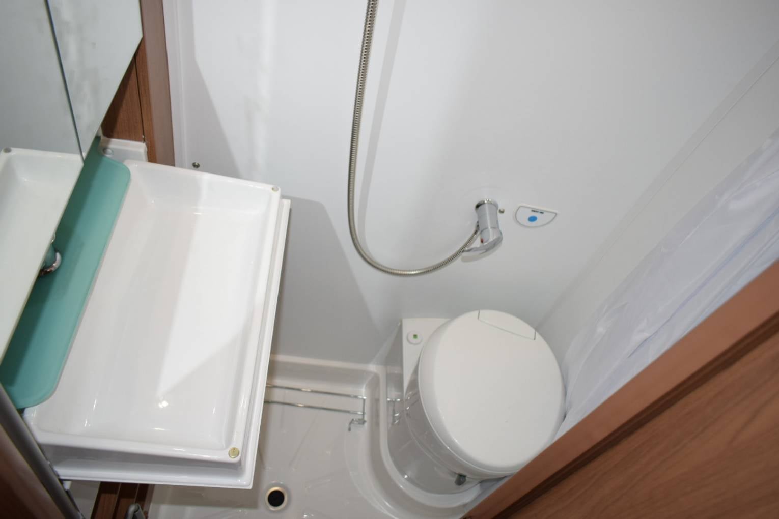 The bathroom on the opposite side has a Thetford flush toilet, flip down wash hand basin and a shower.