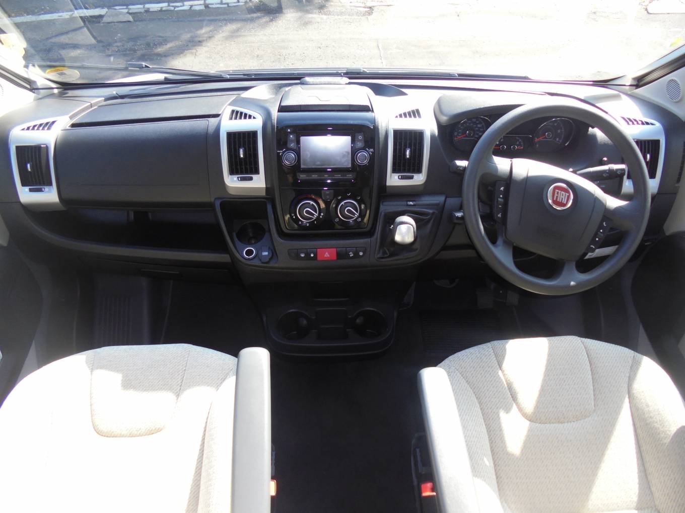 standard achievable for motorhomes). It’s also been fitted with full media radio CD system in the cab with integrated reversing camera and SATNAV.