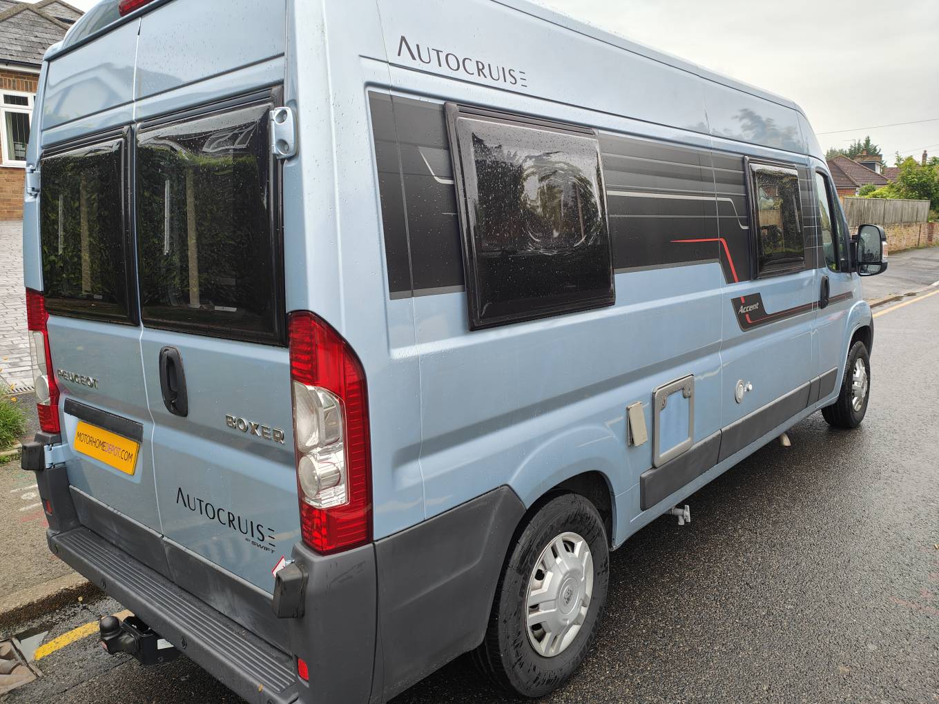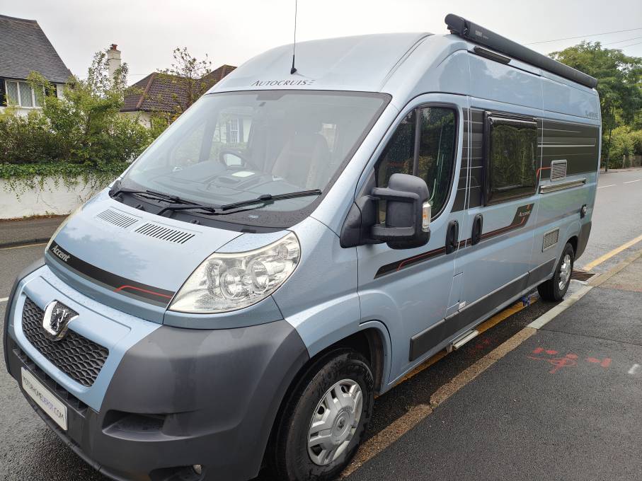 This is an almost AS NEW example of the best selling Autocruise Accent hitop. This 3 berth, 4 seatbelt model features a rear lounge that can either be used as a seating area or can be made into a permanent bed, a seating area to the front that utilises the 2 rotating Captains seats and a well equipped centre kitchen and bathroom. Based on the excellent Peugeot Boxer cab, this 2.2 hdi derivative is a six speed manual with cab aircon and has covered only 16k miles from new with 1 careful owner and has full service history including upto date habitation inspections.. This example also includes a canopy awning, reverse cameras, tv aerial and a towbar that has only been used for a cycle rack. Based in South West london and more pictures available.