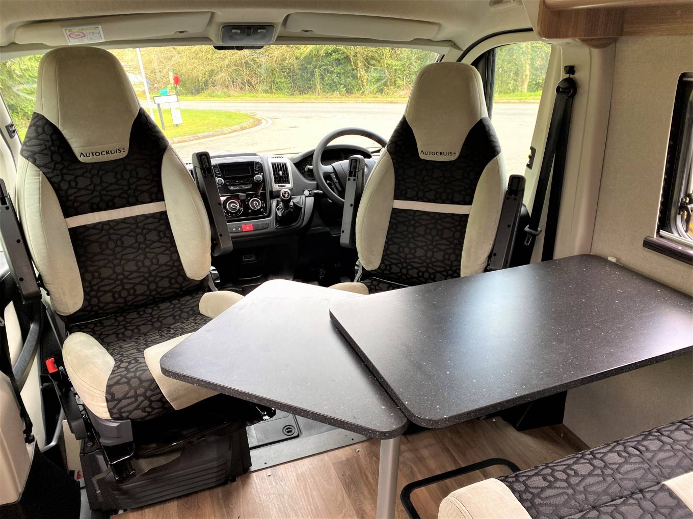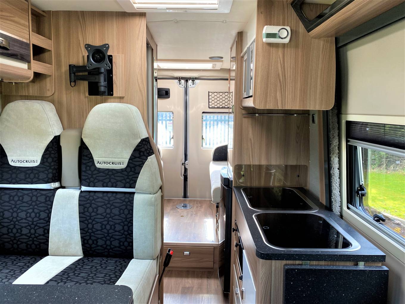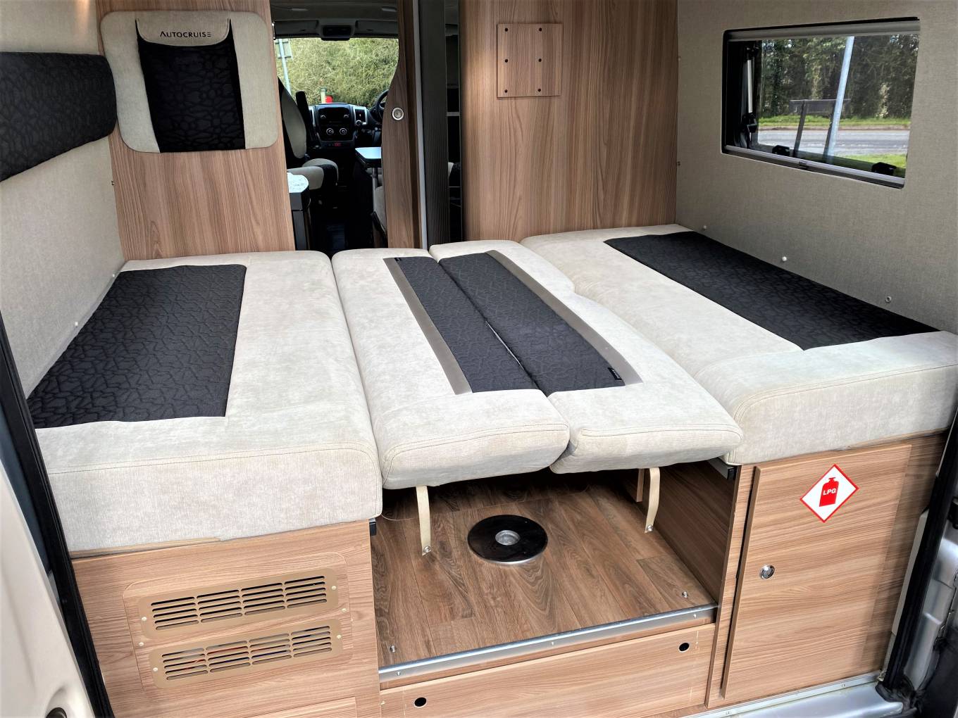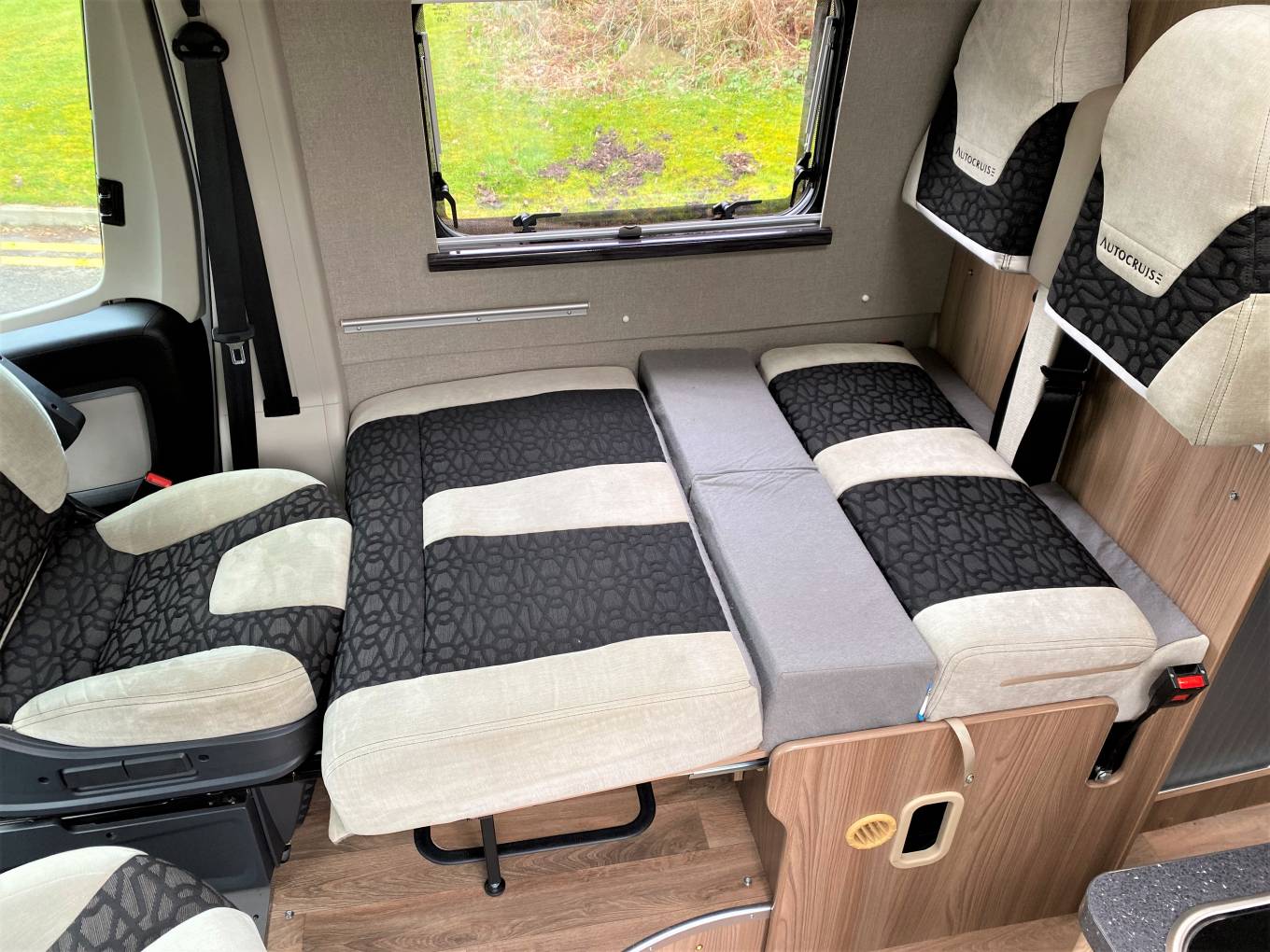 This small compact Autocruise Accent conversion has that desirable feature of end lounge which creates the panoramic view lounging area, especially with rear opening doors... just like having patio doors.