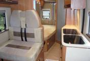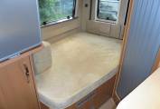Layout is a central lounge and dining area which converts to a single bed, centre kitchen, rear washroom and fixed double bed.
