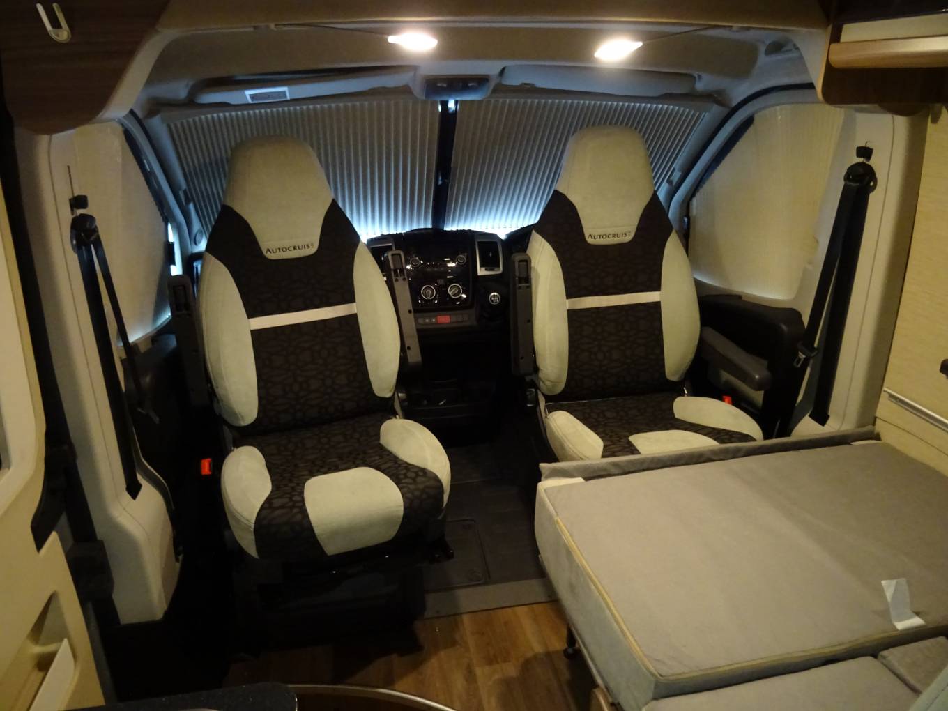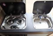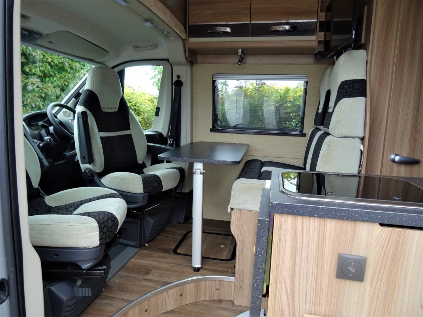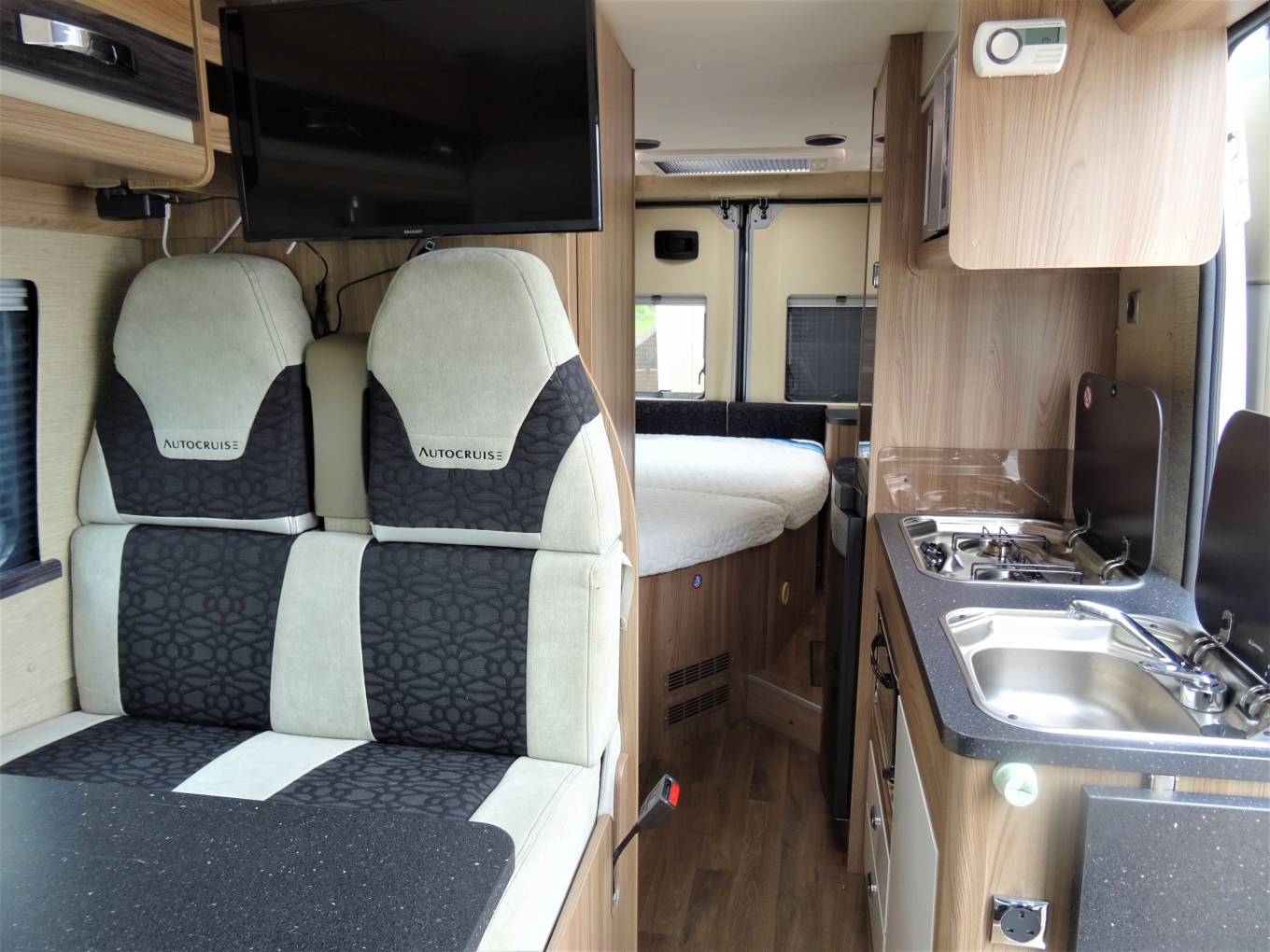 The Autocruise Alto packs one of the most popular layouts found on larger motorhomes into a just over a 6 metre van conversion. There are three clearly defined zones, with the lounging space at the front, kitchen in the centre with washroom adjacent and to the rear a fixed double bed area. Its a tried and trusted setup, nicely executed and adaptable for two or more thanks to four seatbelts and an occasional bed available from the forward dinette, which can seat four for a social gathering.