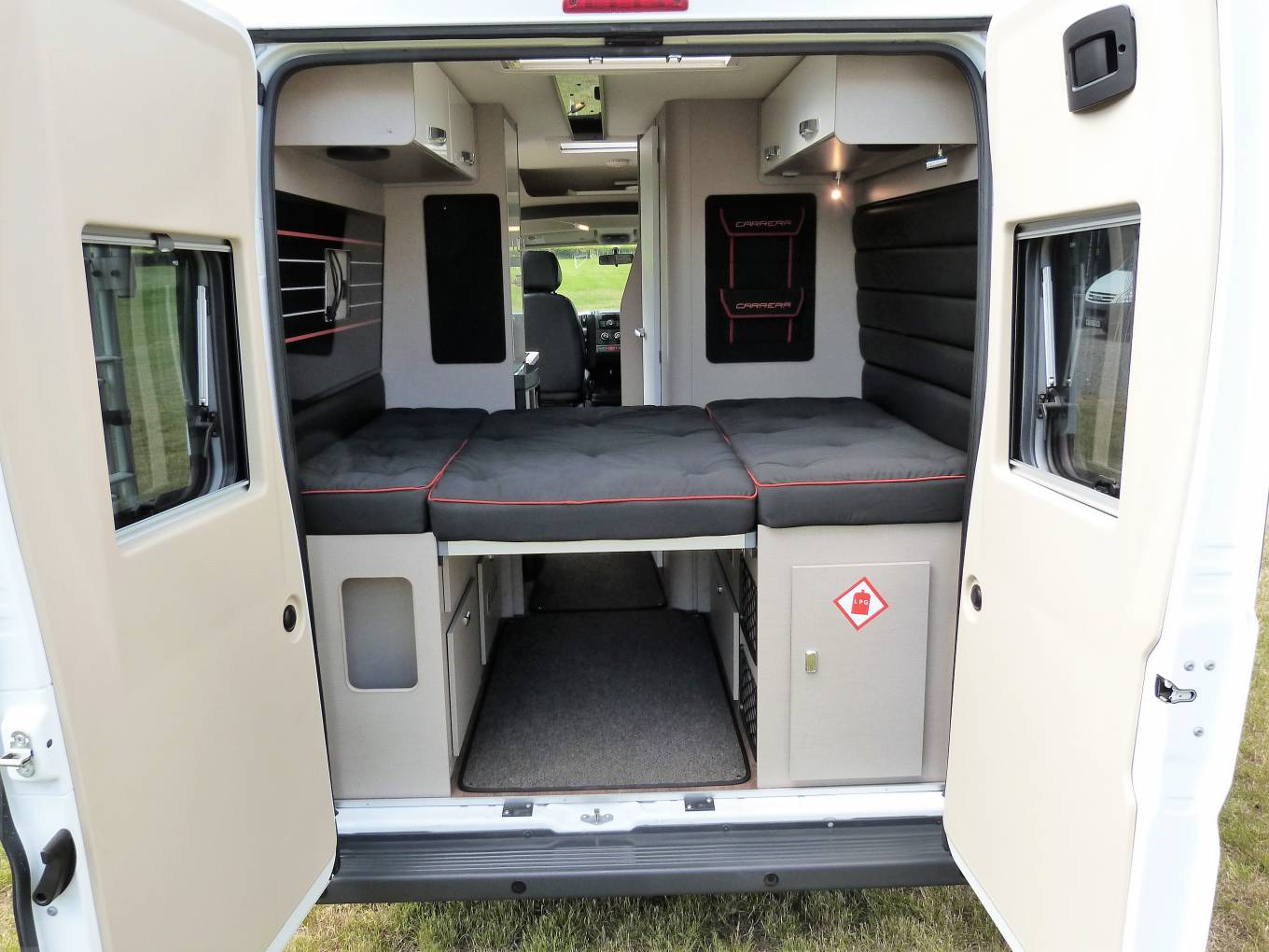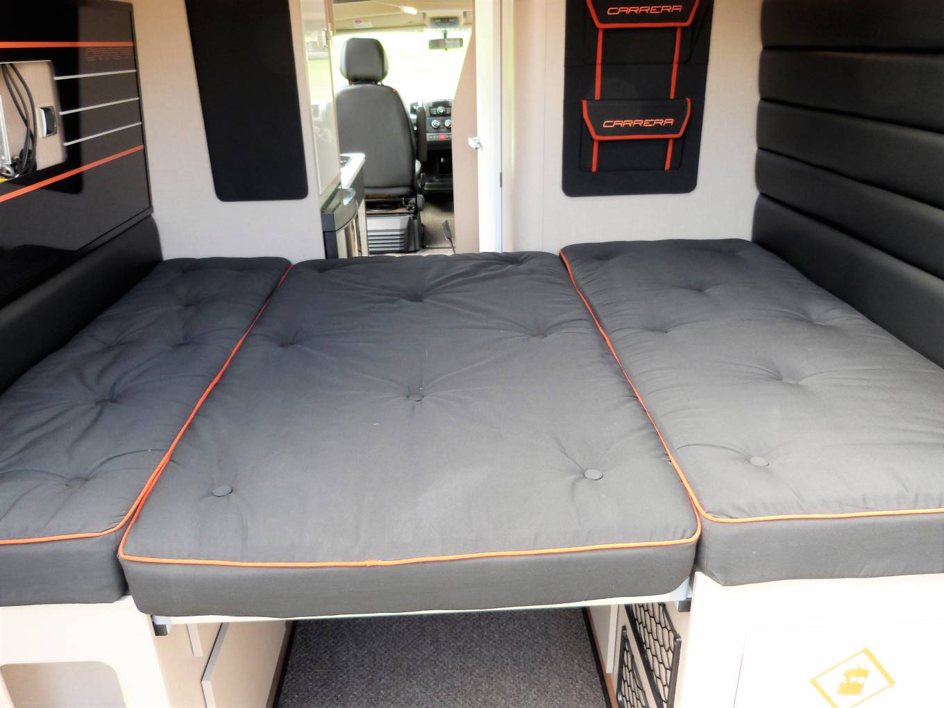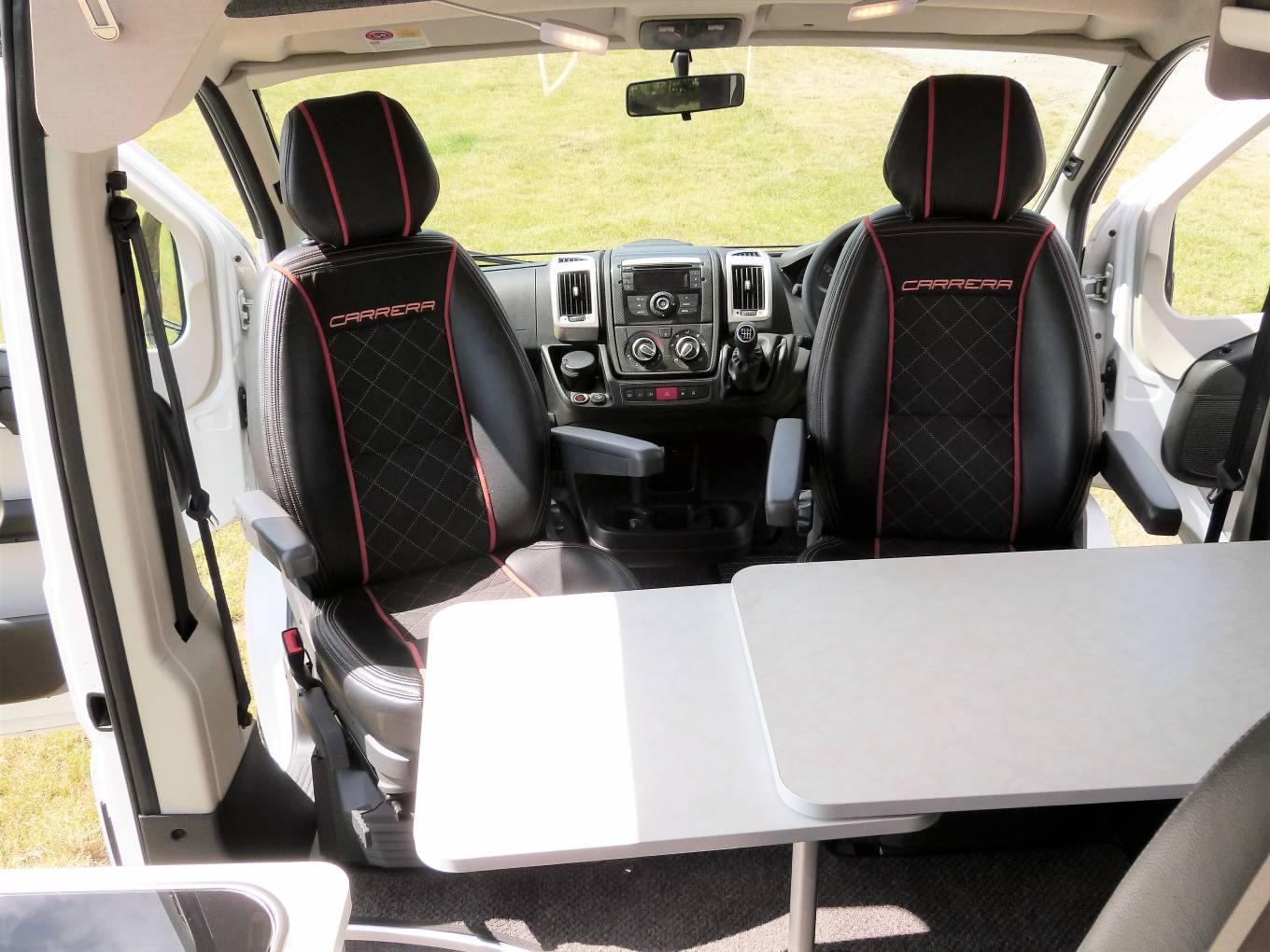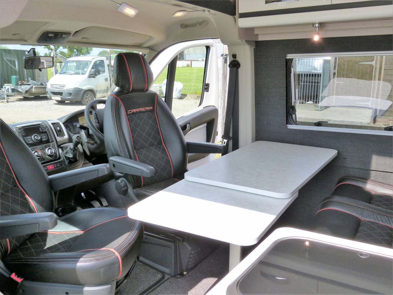 meals. There are 2 travelling seats with full seatbelts and the table can be