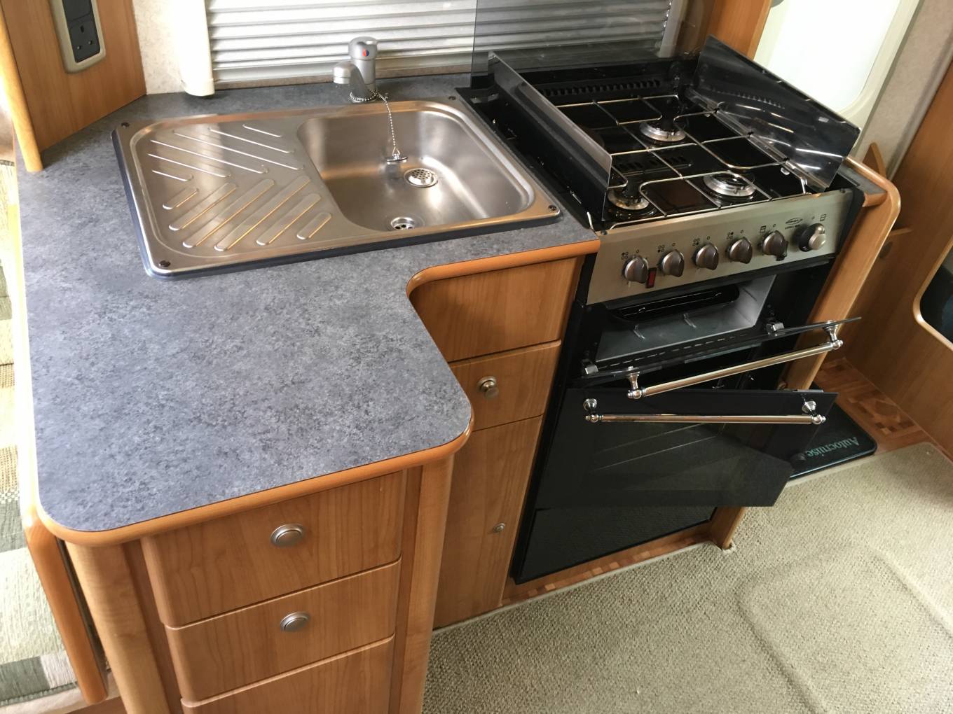 with a Dometic extractor hood above, below is a Spinflo grill and oven, there