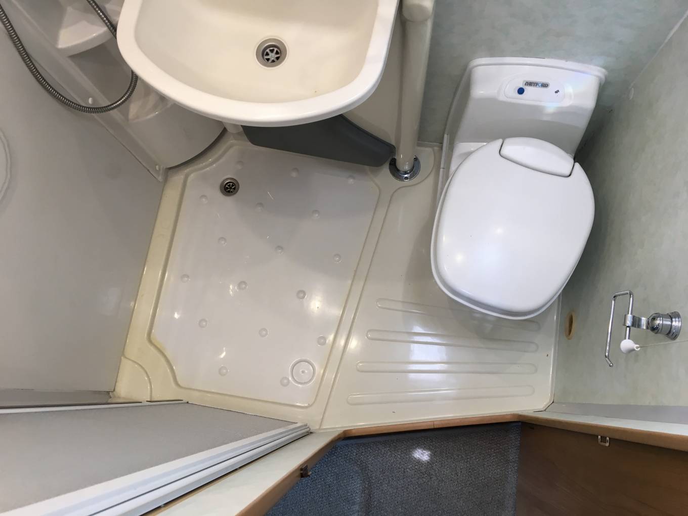 there is a the well appointed washroom, which has a Thetford cassette toilet, swing