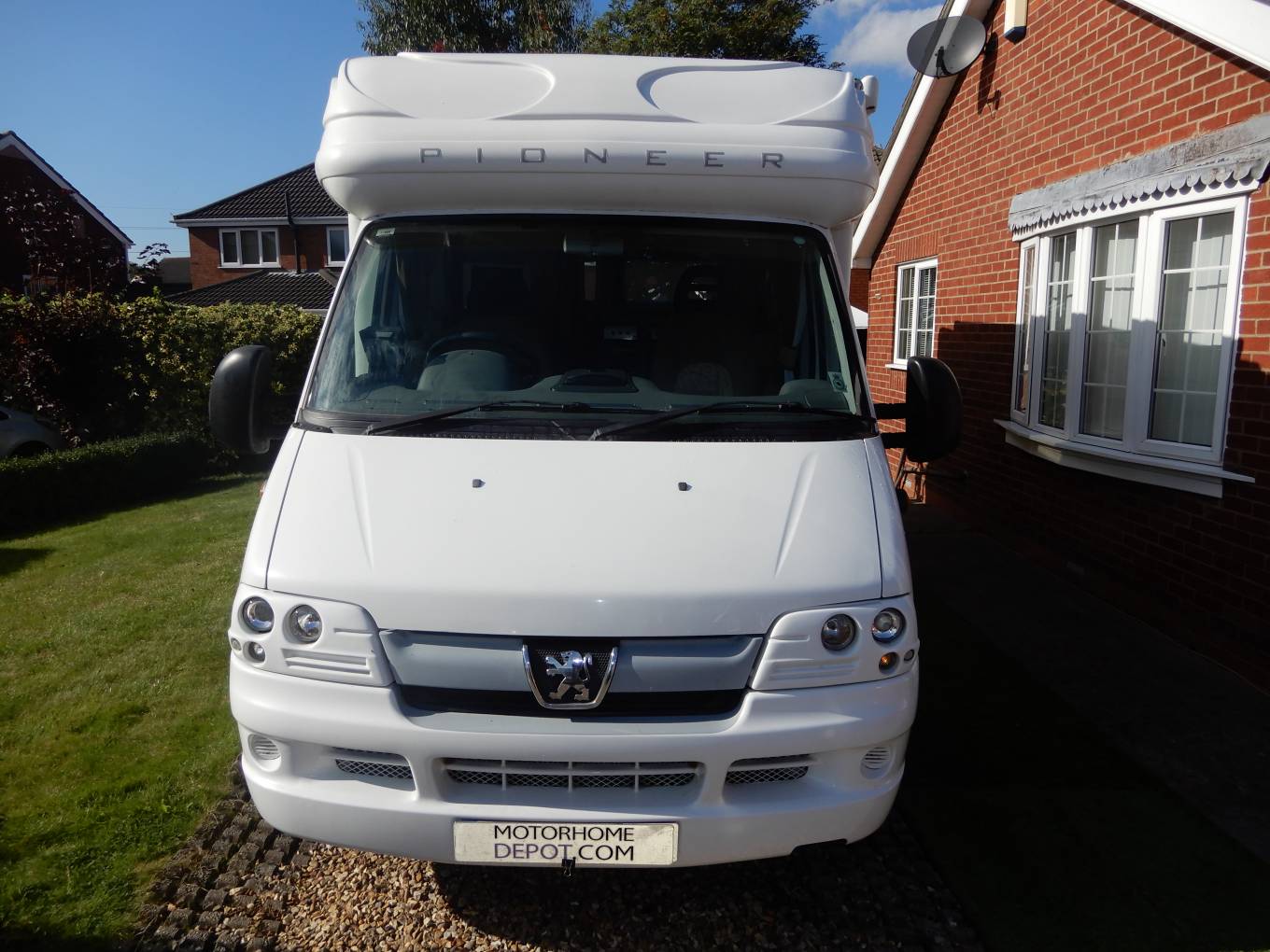 This Motorhome is based in MANSFIELD, Motorhome Depot presents a 2006 Autocruise Pioneer Tasman. This 2 berth motorhome is based on a Peugeot chassis and had a 2.2 litre Diesel engine with a 5 speed manual gearbox and is a credit to its current owners. This motorhome has a 100w Solar panel, reverse camera and sensors, an Inverter, TV/DVD Player, outside BBQ and Shower point, also it has had a cam belt change at 41225 miles. At the rear we have a well equipped kitchen area that boasts a 3 burner gas hob with an additional electric ring, grill, oven, hand wash basin and a 3 way fridge. Adjacent to this is a good sized washroom that consists of Thetford toilet, hand wash basin and separate shower, towards the front, we have 2 good sized side benches that are comfortable and can be used as singles or pulled together to create a large double bed with plenty of storage. Overall this is a fantastic motorhome and perfect for a couple to travel in comfort.