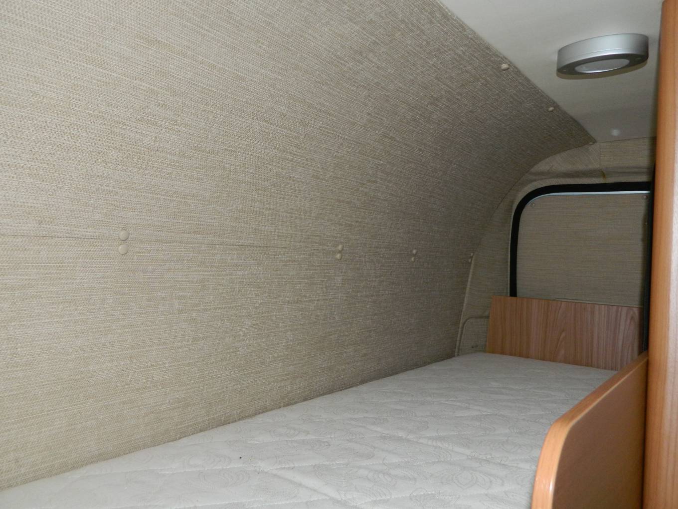 bunk able to fold up for additional storage. Opposite the bunks is a very