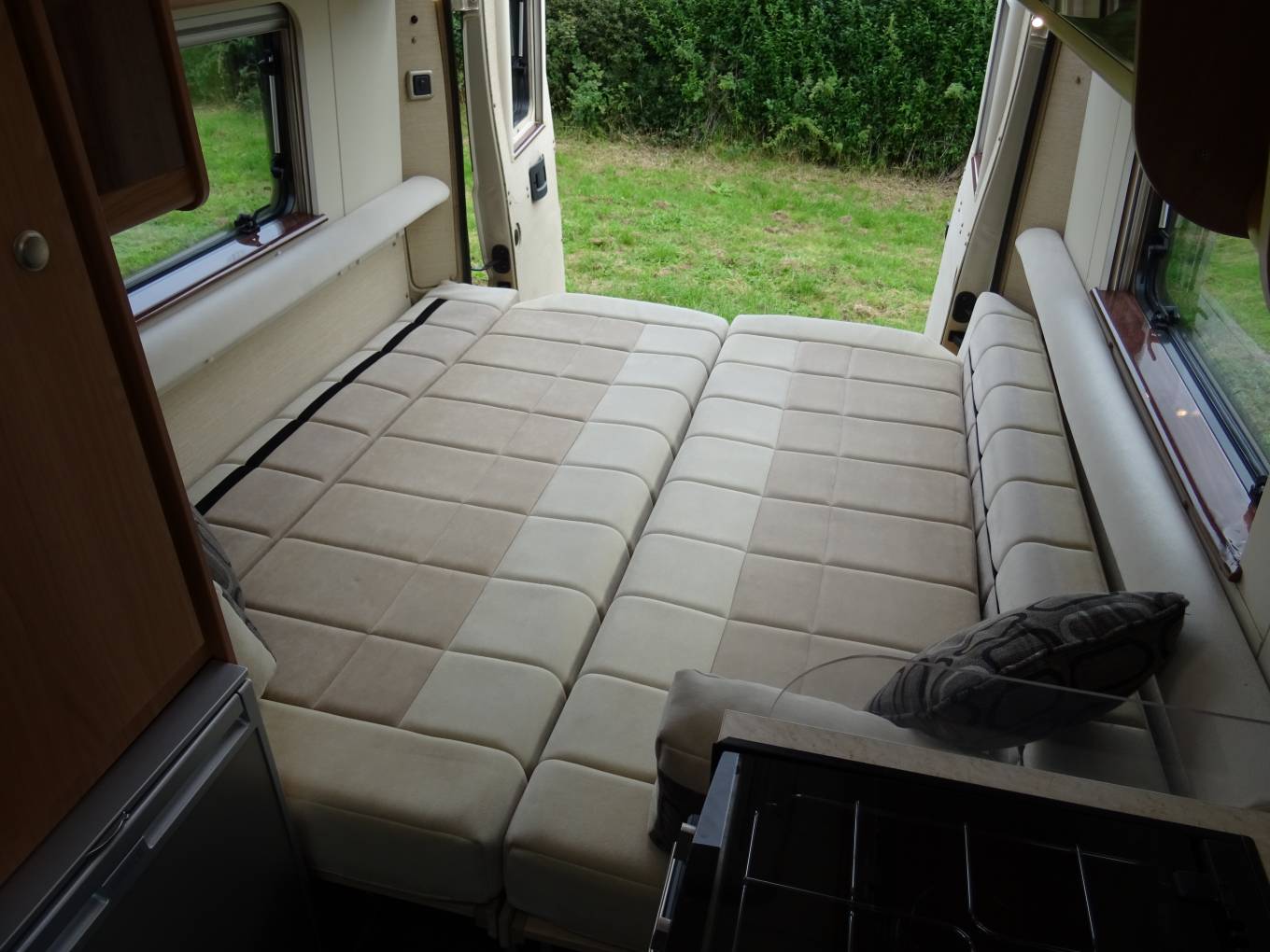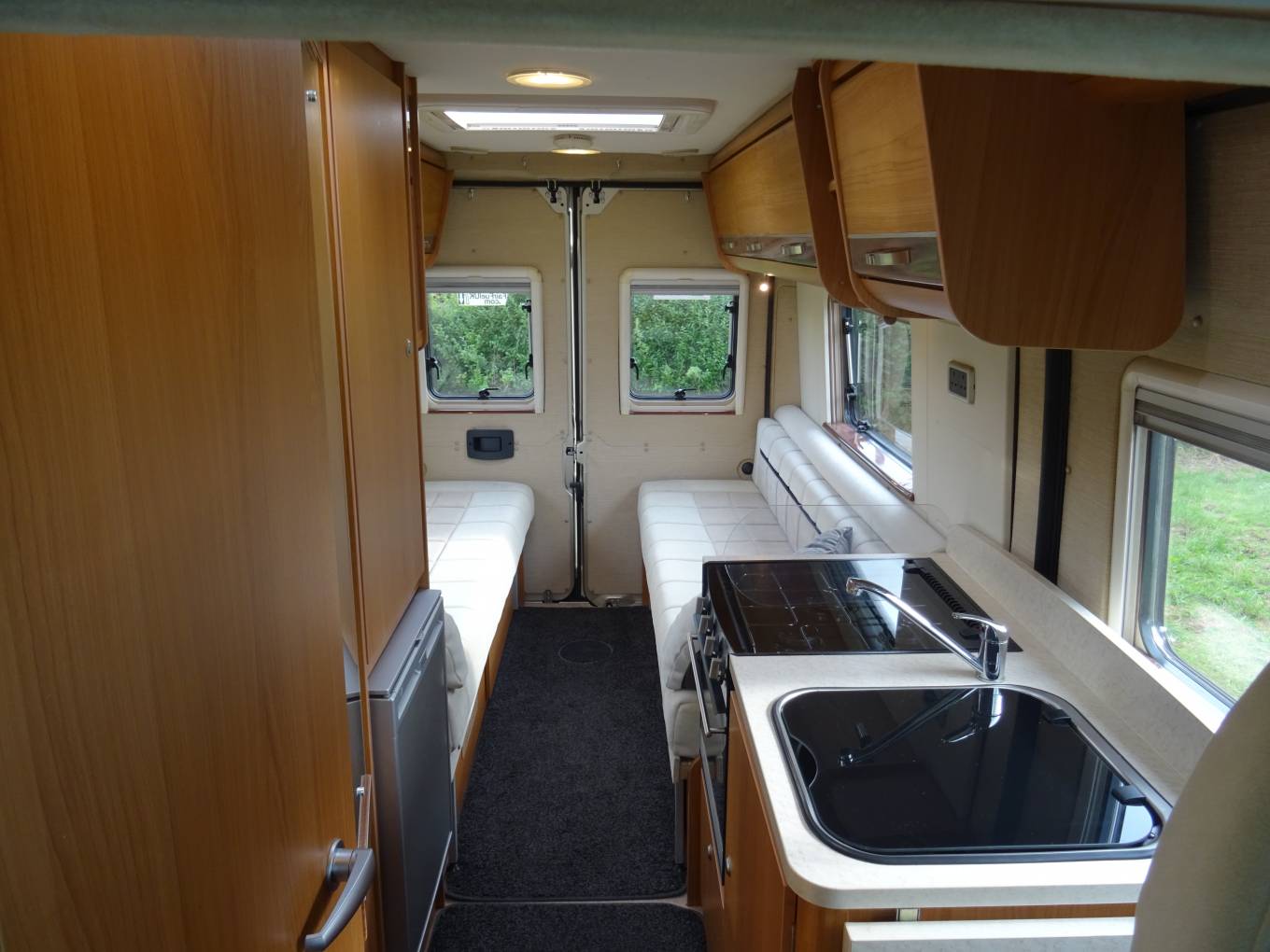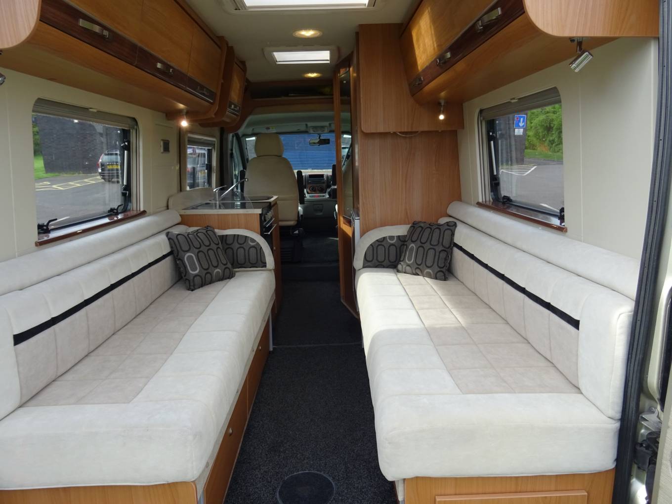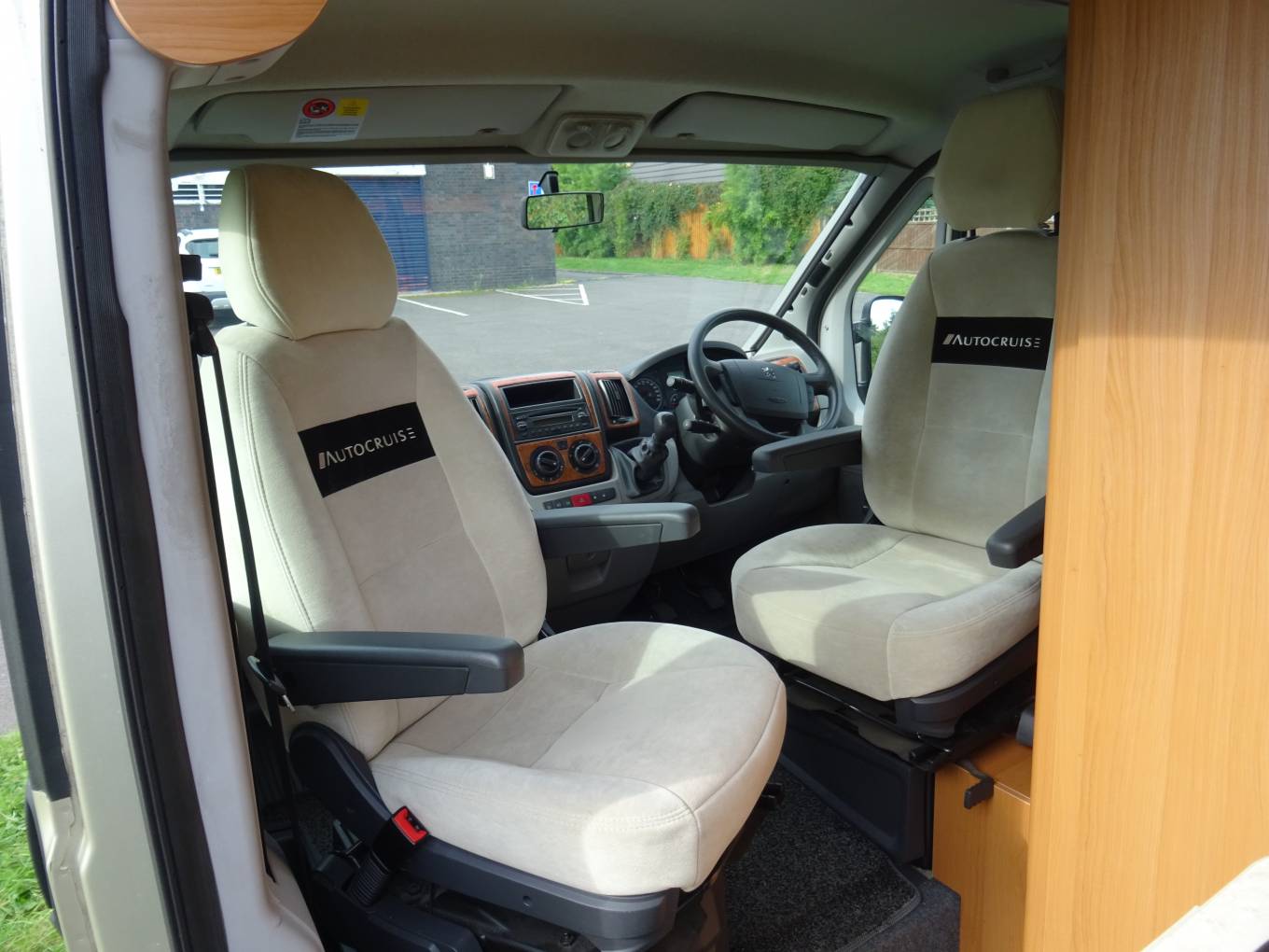 Motorhome Depot Chester and Wirral is pleased to present, for sale, this December 2010 Autocruise Rhythm Champagne Limited Edition campervan. Built on a Peugeot chassis with 2.2 litre diesel engine and 6 speed manual transmission with 1 owner from new. The vehicle has done 42,540 miles. It is in excellent condition throughout. Stylish, sleek and measuring just 6 meters in length, this camper will not limit you on where you go and easily doubles up as an ordinary day vehicle. The cab boasts driver and passenger airbags, 2 x swivel seats, windscreen blind, electric windows and door mirrors, air-con, cruise control, reversing sensors, alarm, radio, and adjustable steering wheel position. The kitchen is next to the habitation door and benefits from additional light and ventilation with the door open. The kitchen features a fridge with freezer compartment; a 3 hob cooker; oven/grill; sink and extendable worktop to provide more food prep space. Utensil storage can be found in surrounding cupboards and draws. Opposite the kitchen is the washroom, complete with all essential fittings and fixtures needed for being completely self-sufficient when on your travels. Undoubtedly the main feature, found at the rear of the Autocruise Rhythm, is its spacious and versatile rear lounge where the two parallel benches (6ft 2in long), in stain resistant easy clean Impala fabric, are perfect for relaxing in the day-time. There is ample natural light from the windows and open back doors which allow for panoramic views of your surroundings when enjoying food and drink around the dining table. Come night-time, choose between utilising this space as two single beds, 6ft 2in x 2ft 2in, or convert it into a huge double bed, 6ft 2in x 6ft 2in, all in a matter of minutes. There is a drop down tv cupboard and tv with omni-directional aerial.