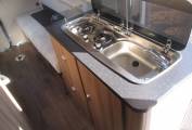 The Washroom has a Thetford Swivelling Cassette Toilet with Electric Flush, Dropdown Washbasin plus Storage Cabinets and Fully Fitted Integral Shower Cubicle