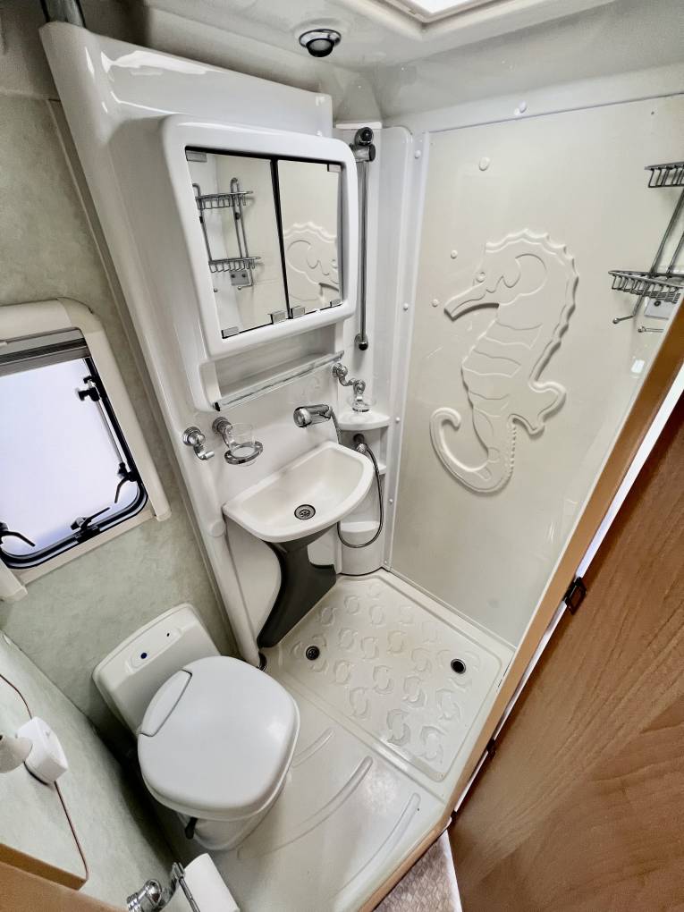 toilet, pop out sink and clever shower with the doors pulling out from the rear