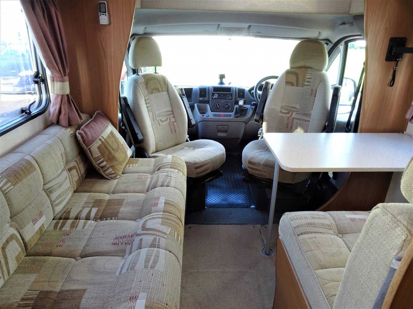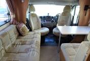 As you enter the door of the MH into the lounge area with a forward facing bench seat and a large side sofa and with both of the front captain seats that swivel around a removable table it creates a great area to relax and dine in.